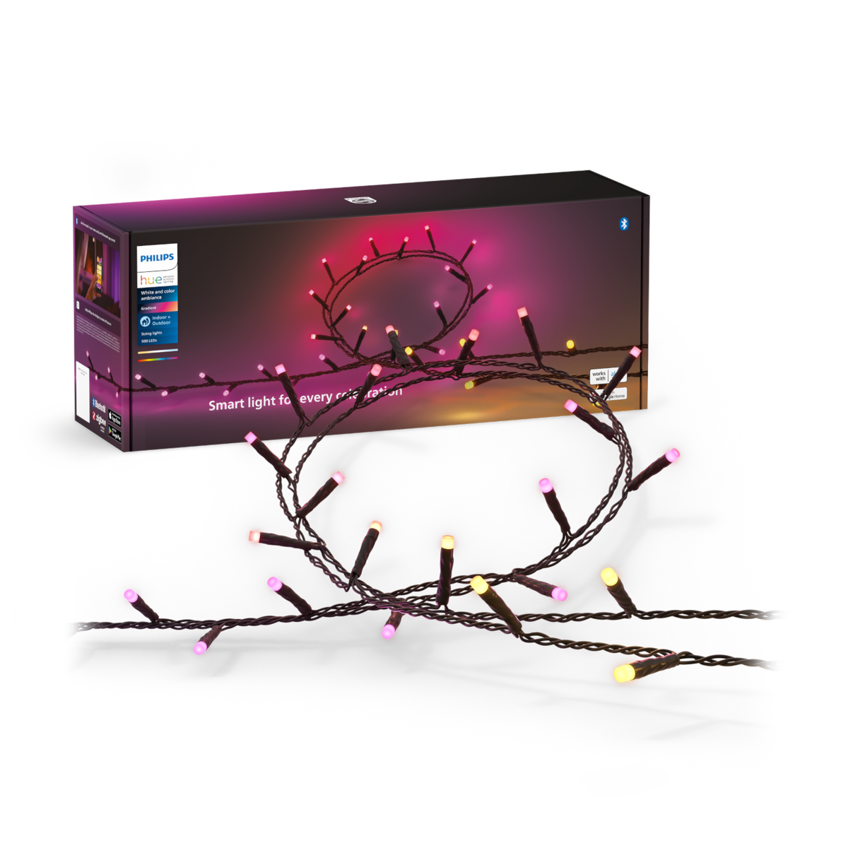 Auch rund um die smarte Beleuchtung hat Signify neue Produkte präsentiert. Die im letzten Jahr gestartete Philips Hue Festavia Lichterkette startet in die zweite Generation. Sie ist für innen und außen einsetzbar und kommt in drei verschiedenen Varianten: 100 LEDs bei einer Kabellänge von 8 Metern, 250 LEDs bei einer Kabellänge von 20 Metern und 500 LEDs bei einer Kabellänge von 40 Metern. Preislich geht es hier ab 119,99 Euro los. Dazu gibt es drei neue Lichteffekte namens Prisma, Funkeln und Opal.