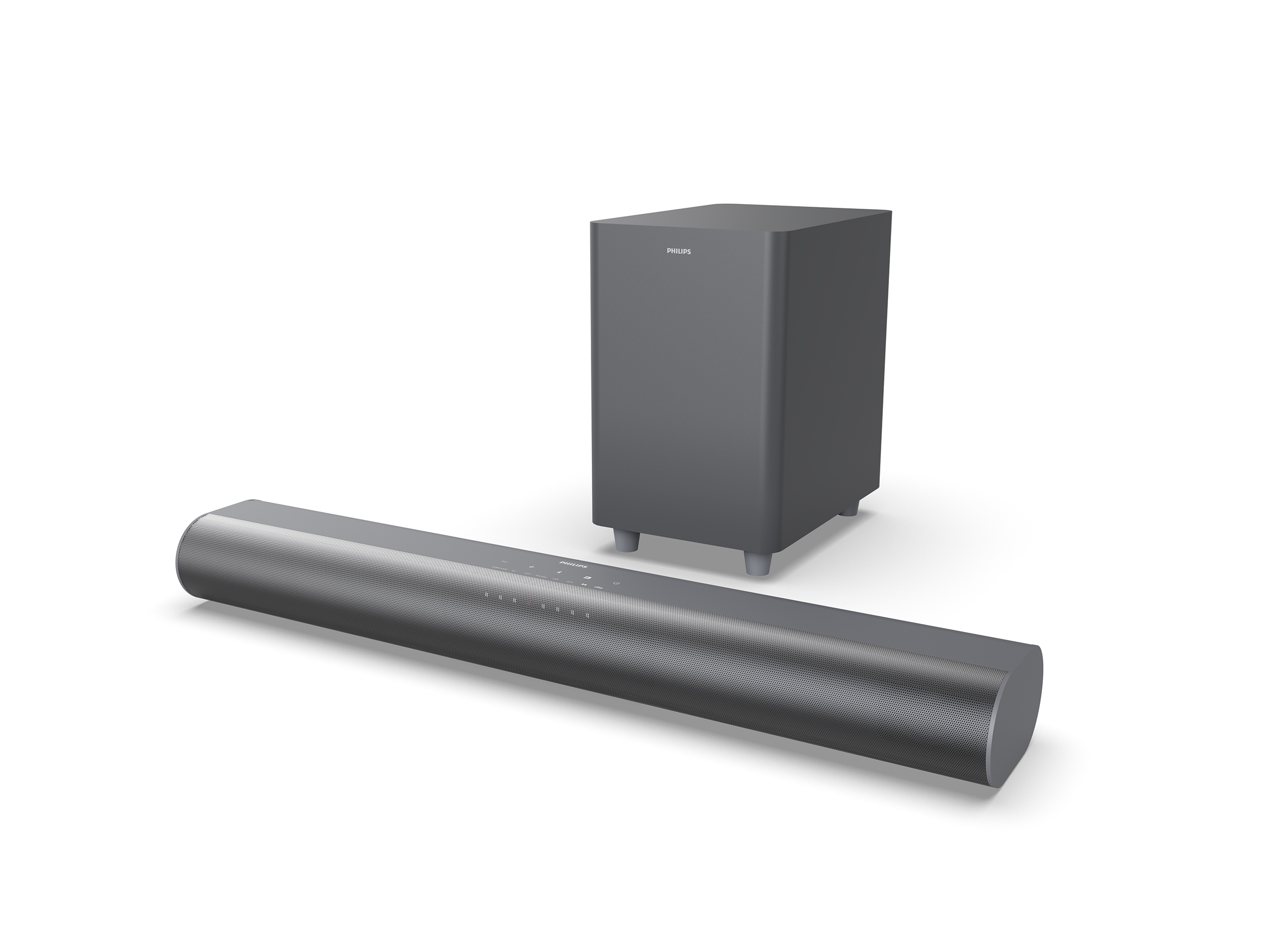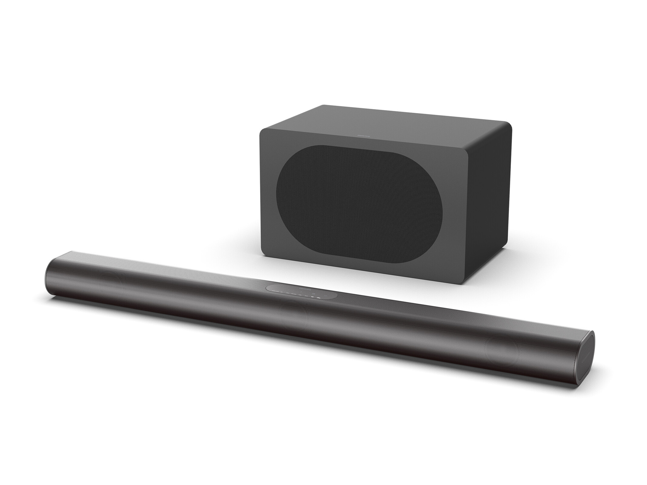 Die B8500 ist ein leistungsstarkes 5.1-Kanal-Modell mit 300 W und wurde speziell für die neuesten Philips MLED950- und OLED810-Fernseher entwickelt. Der elliptische Lautsprecher mit den Maßen 900 x 65 x 105 mm (~35,4 x 2,6 x 4,1 Zoll) ist so gestaltet, dass er zum zentralen Ständer des Fernsehers passt und verfügt über ein Satin Chrome Sheen Finish. Er ist mit zwei 2,25-Zoll-Treibern und zwei weiteren 2-Zoll-Treibern für die seitlich abstrahlenden Kanäle ausgestattet. Der zugehörige Subwoofer besitzt einen 8-Zoll-Treiber und kann sowohl horizontal als auch vertikal aufgestellt werden. Diese Soundbar ist mit einem HDMI 2.1 FRL-Anschluss ausgestattet, der 4K@120Hz Passthrough unterstützt, sowie Bluetooth 5.4 für kabellose Konnektivität.
