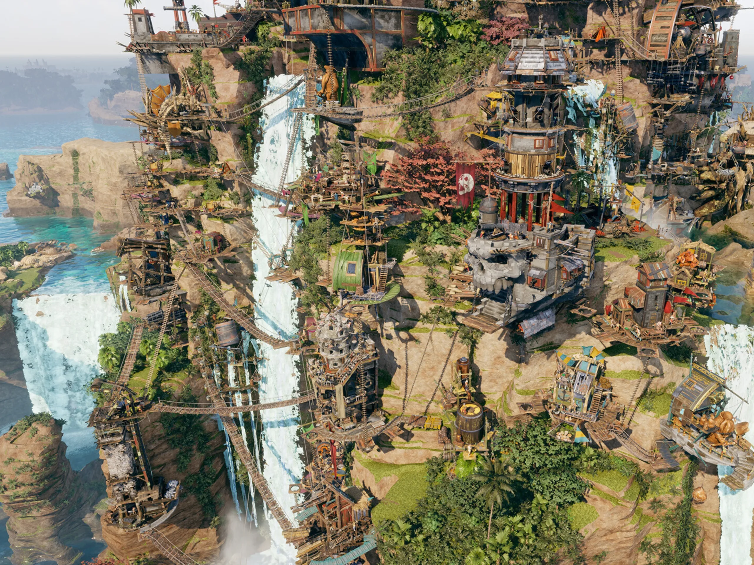 Inhaltlich setzt Corsair Cove auf klassischen Städtebau. Das Besondere: Statt einer normalen Siedlung errichtet man auf seiner Insel eine Piratenhochburg – inklusive Hafen, Flotte und Produktionsketten. Das I-Tüpfelchen: Der Stadtbau funktioniert nicht nur in der Breite, sondern vor allem in der Höhe: Gebäude werden an Felswände gesetzt, mit Brücken, Seilen und Stegen verbunden und wachsen so zu einer vertikalen Piratenstadt zusammen.