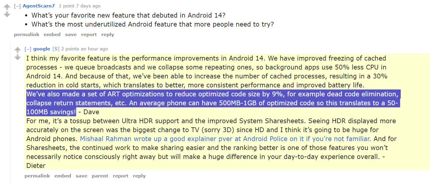 Dave Burke (Google VP) auf Reddit, via Mishaal Rahman (2, 3)