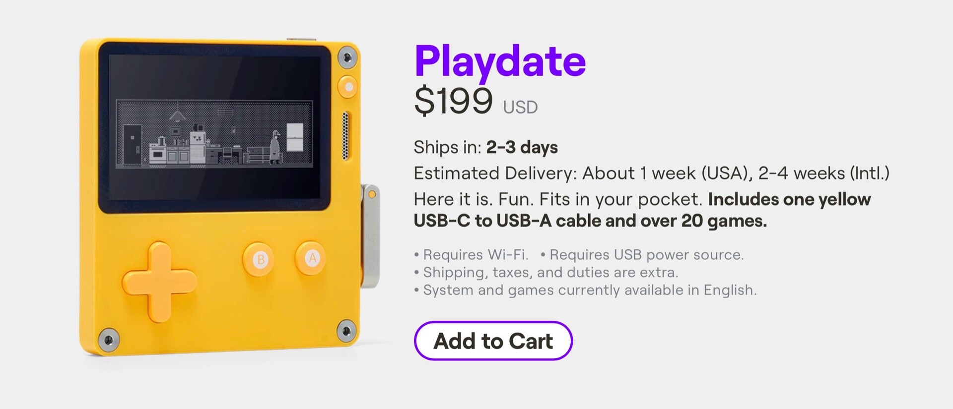 Der Playdate Gaming-Handheld wurde nach einer Verzögerung erstmals Anfang 2022 ausgeliefert, hatte seitdem aber stetig mit Verfügbarkeits-Problemen zu kämpfen, da die Nachfrage das zu knappe Angebot überstiegen hat.
