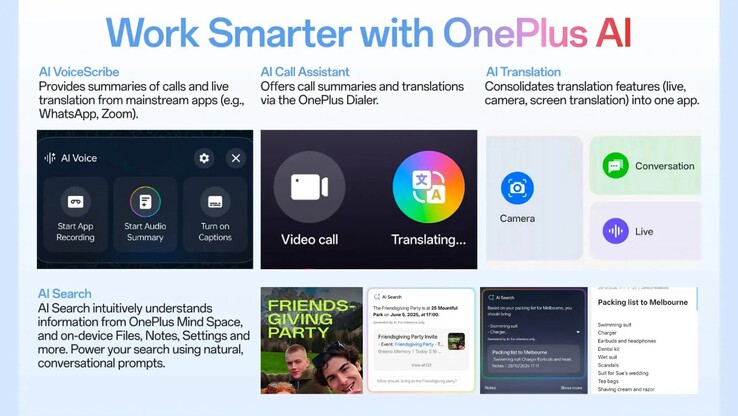 Die gespeicherten Inhalte sollen durch den Sprachassistenten von OnePlus durchsucht werden können, um etwa Termine schnell wieder zu finden. Diese AI-Features sollen bald auf allen Smartphones der OnePlus 13 Serie verfügbar sein, wenn diese keinen Plus Key besitzen, können Inhalte durch eine Wisch-Geste mit drei Fingern gespeichert werden.