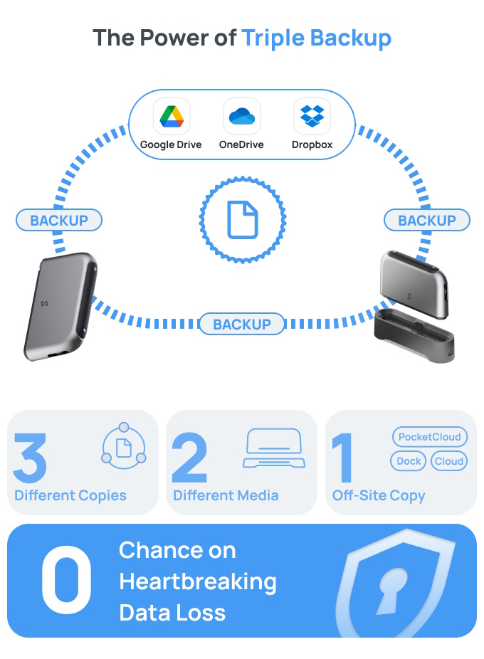 Der eigentliche Speicher misst 153 x 93 x 27 Millimeter und dürfte sich damit ganz gut mitnehmen lassen. Es kann eine M.2-SSD verbaut werden, wobei sich schon alleine mit dem Mobilgerät etwa Inhalte von einer Speicherkarte oder auch einem USB-Speicher sichern lassen. Dabei ist am PocketCloud bereits ein LCD-Display verbaut, zur Steuerung kommt ein Drehregler zum Einsatz. Sehr ungewöhnlich: Es stehen zwei Akkus mit einer Kapazität von 3.200 mAh zur Verfügung, wobei sich diese auswechseln lassen. Die Laufzeit wird mit bis zu 6 Stunden angegeben.