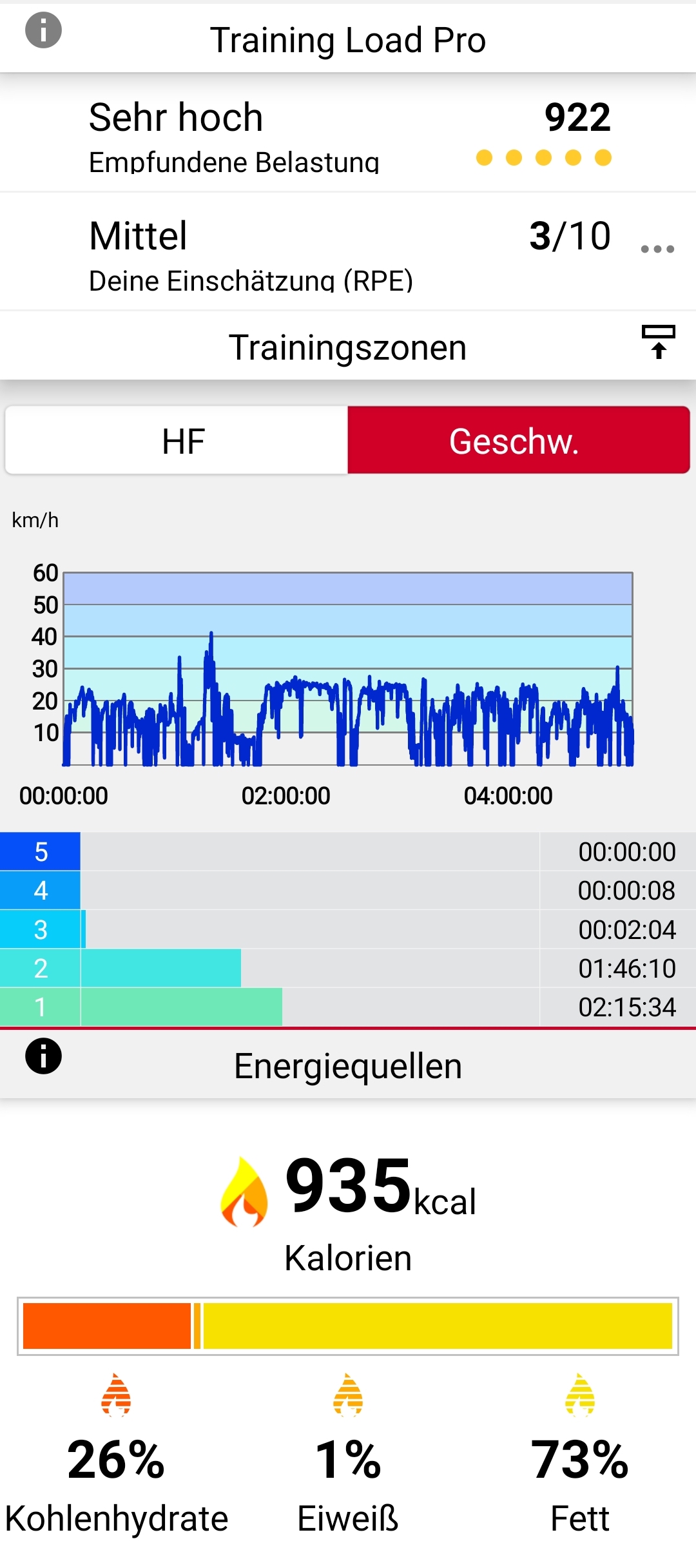 - Aufruf der letzten Trainingseinheiten mit den jeweiligen Details