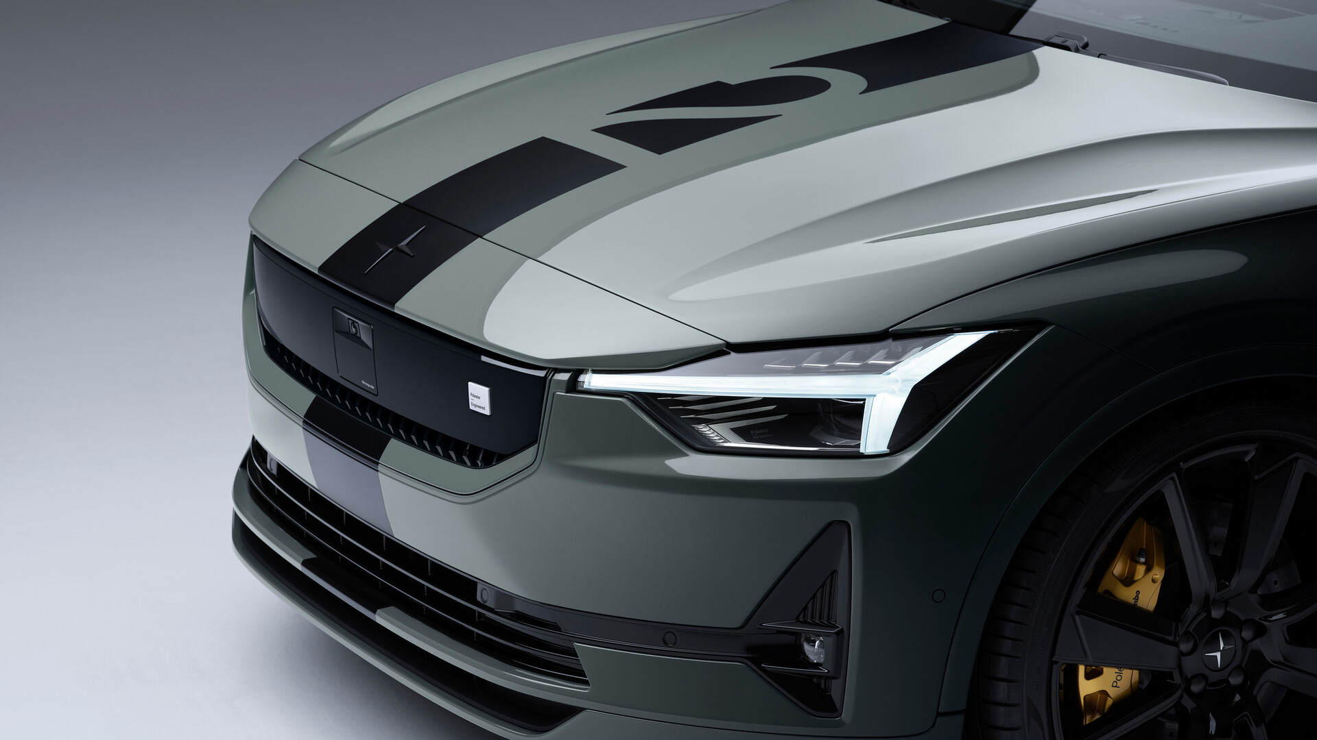 Der Polestar 2 BST edition 230 Elektro-Flitzer ist in der Farbe Space (schwarz) oder der exklusiven grünen "Nebula"-Lackierung erhältlich. Auf Kunden-Wunsch und für einen Aufpreis von 1.000 Euro appliziert der E-Auto-Hersteller aus Schweden seinem Polestar 2 BST edition 230 einen mattschwarzen Rennstreifen auf Haube, Dach und Heckpartie.