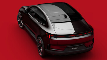 Der Polestar 4 verzichtet auf das Heckfenster. Damit sich die hinteren Fahrgäste nicht eingeengt fühlen, besitzt der Polestar ein riesiges und bis weit ins abfallend geschwungene Heck verlaufendes Glas-Panoramadach, das Luftigkeit für die Fondpassagiere verspricht und den Innenraum mit Sonnenlicht fluten soll. Als E-SUV-Coupé zeigt sich die aerodynamische Optimierung durch eine im Vergleich zu Polestar 2 und Polestar 3 niedrige Fahrzeugfront. Zudem spendieren die Schweden dem 4er versenkbare Türgriffe, flächenbündige Verglasung mit rahmenlosen Fenstern, Aero-Lamellen hinten und getrennte Doppelscheinwerfer mit eigener Lichtsignatur und illuminiertes Polestar-Emblem.