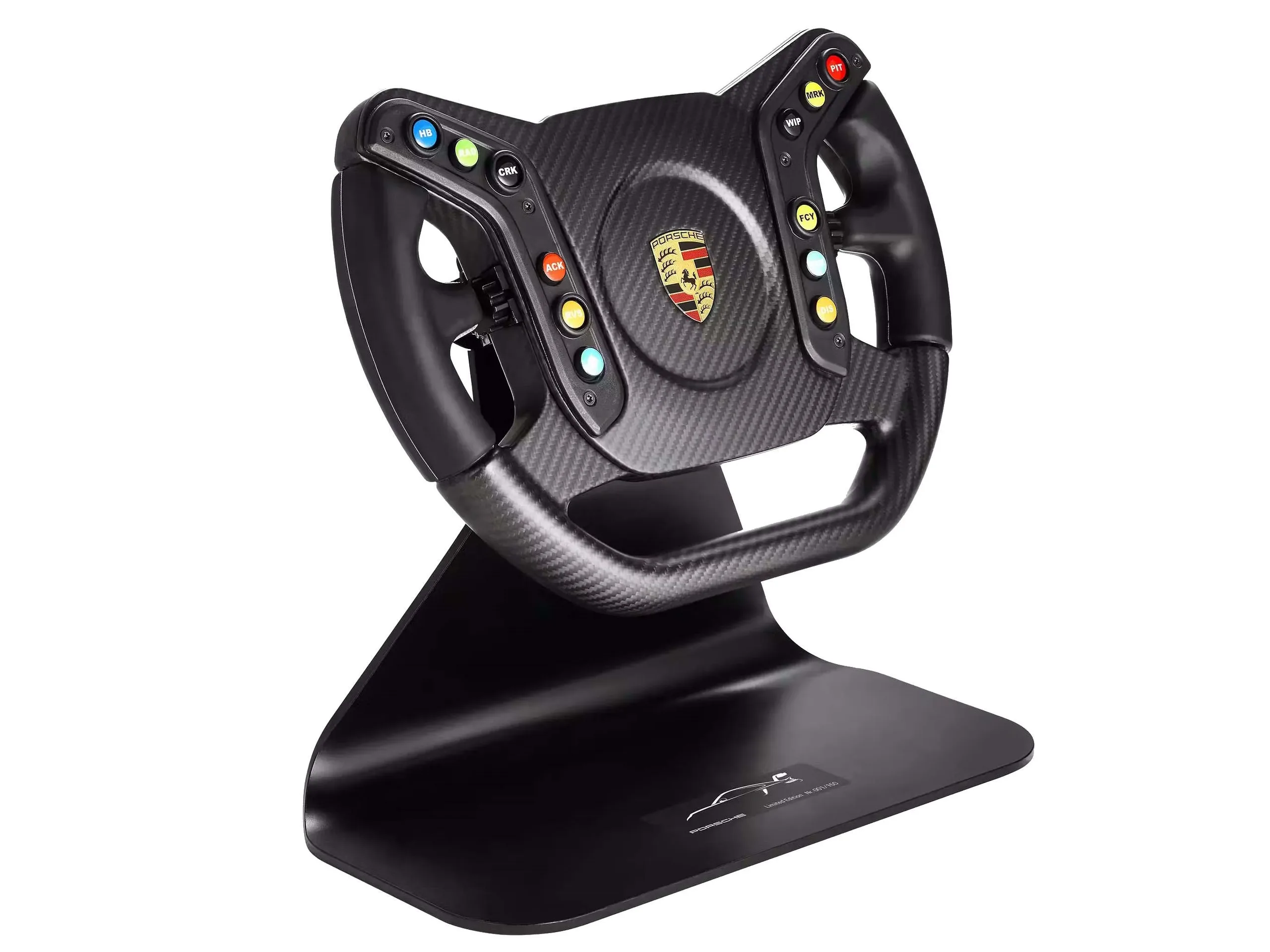 Durch das geringe Gewicht soll sich gleichzeitig ein optimales Ansprechverhalten ergeben. Angeschlossen wird das Lenkrad über USB. Herstellerangaben zufolge besteht eine Steckkompatibilität zu den wichtigsten PC-Simulationsspielen, der Spacer soll zu gängigen Wheelbases kompatibel sein. Das auf 150 Stück limitierte Lenkrad bringt hintergrundbeleuchtete Tasten mit - konkret stehen an der Vorderseite zwölf und an der Rückseite zwei Tasten bereit. Die Helligkeit soll sich in Bezug auf die Intensität frei einstellen lassen.