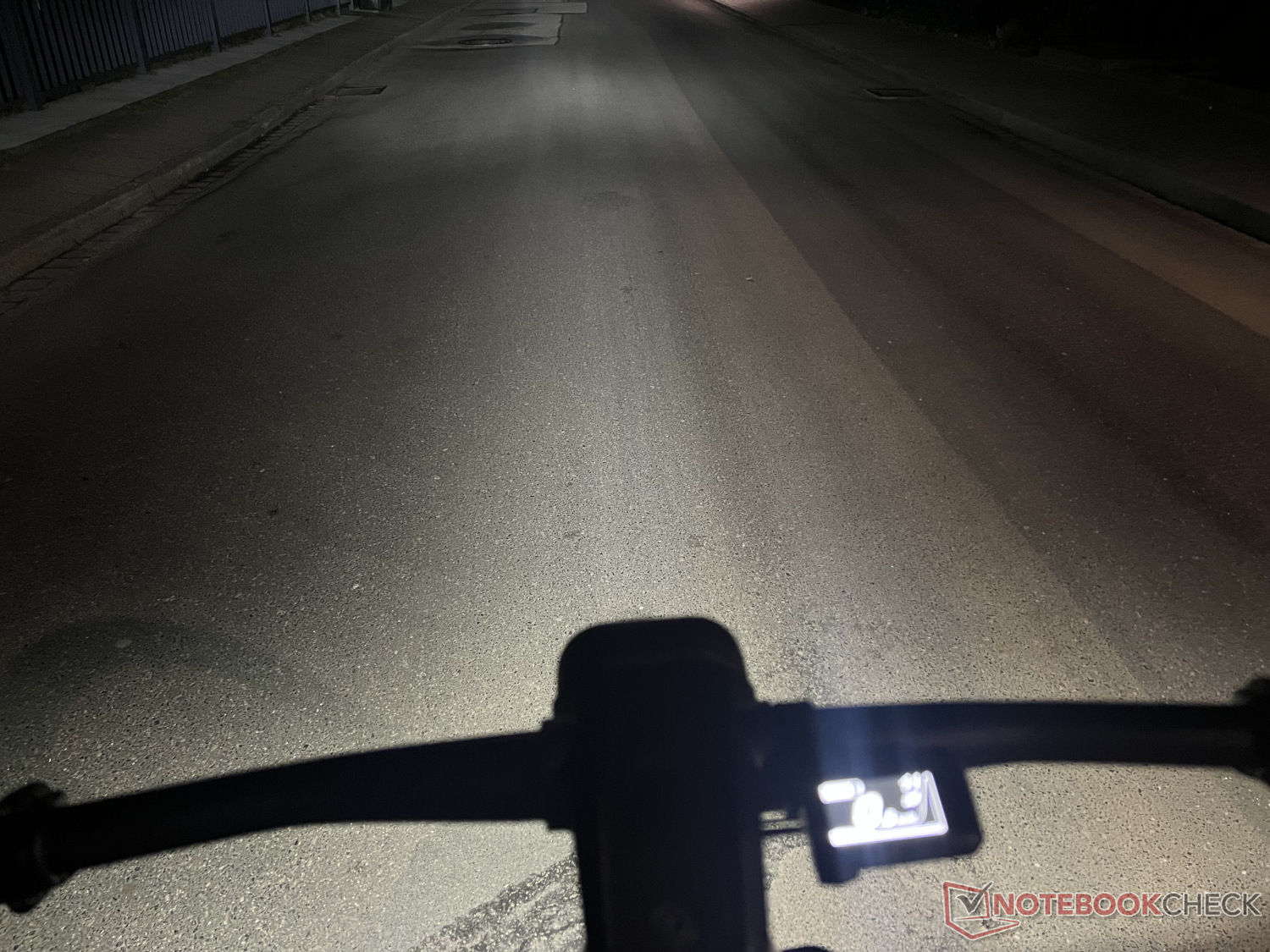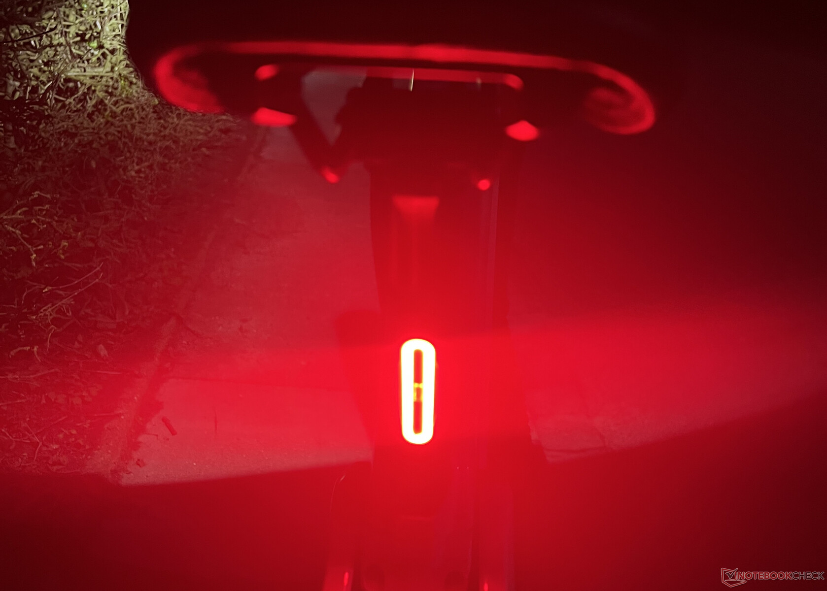 Das gilt auch für die integrierte Beleuchtung. Die ist nicht nur besonders hell und sorgt so für gute Sicht und Sichtbarkeit, sondern beinhaltet vorne auch ein Fernlicht per Tastendruck. Im Klartext: Ein E-Bike mit eingebauter Lichthupe. So kann man auch auf dem Radweg per Lichtsignal auf sich aufmerksam machen.
