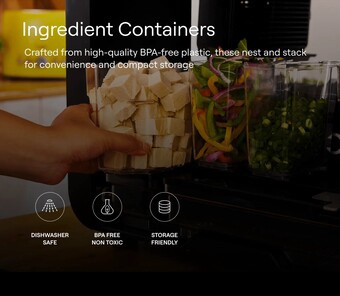 Neben vier großen Behältern für Zubehör gibt es auch je einen Behälter für Wasser und für Öl sowie 20 kleine Behälter, die für Gewürze bestimmt sind. Sind die Zutaten und Gewürze vorbereitet und ein Rezept ausgewählt, soll der Kochvorgang gänzlich automatisiert werden. So kann das Abendessen beispielsweise pünktlich zu jener Zeit fertiggestellt werden, zu der man in der Regel nach Hause kommt. Der Fortschritt kann in der zugehörigen Smartphone-App verfolgt werden, ein aktives Abo vorausgesetzt.
