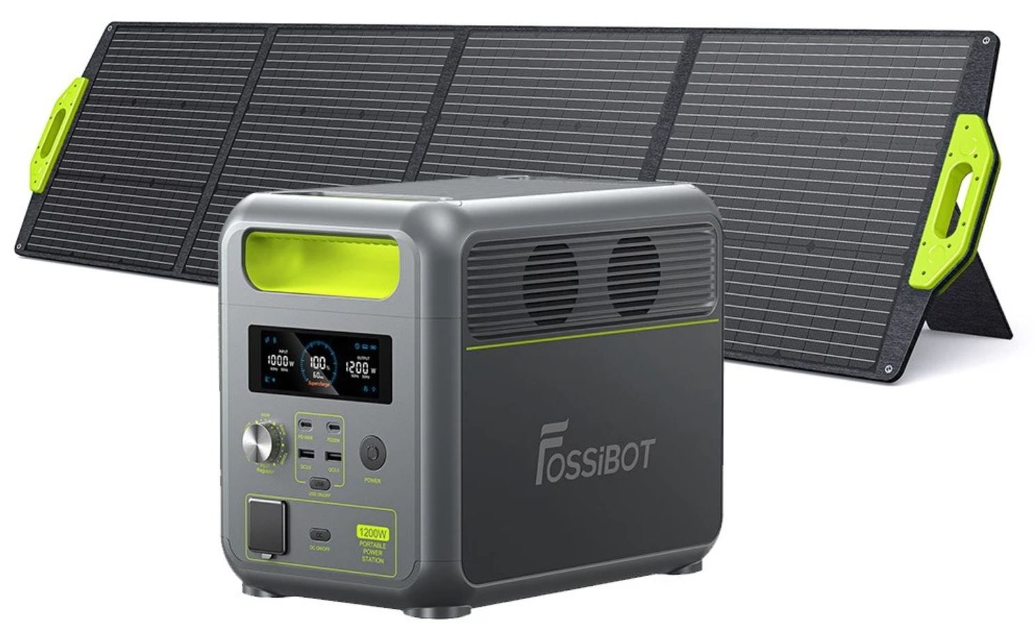 Auf Wunsch lässt sich der Solargenerator auch im Paket samt faltbarem SP200 Solarpanel von FossiBot ordern. Dieses kostet dank des Rabattcodes NNNSRDJY nur 899 Euro.