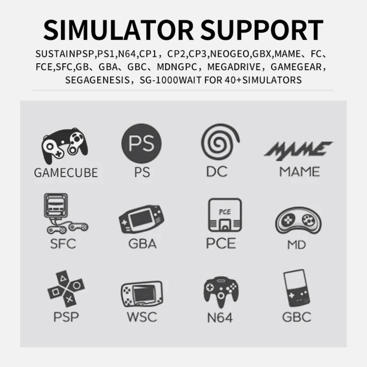 Die Leistung soll reichen, um über 10.000 unterschiedliche Spiele flüssig darzustellen, vor allem von Retro-Systemen, wie der PlayStation 1, dem Nintendo 64, dem Game Boy Advance, dem GameCube oder auch der Sega Dreamcast. Für die Emulation verlässt sich der Powkiddy Y6 GameStick auf EmuELEC 4.3 auf Linux-Basis. Der Hersteller liefert zwei drahtlose Controller mit, die stark an die Gamepads der ersten PlayStation erinnern.