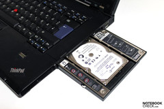Für den geplanten Festplattentausch war das Lösen von genau einer Schraube am Gehäuse notwendig. Gesagt getan, alte Harddisk raus, HDD-Rahmen wechseln, SSD rein. Die alte Festplatte kam schließlich in den Adapter und wurde sogleich in den Ultrabay-Schacht eingesetzt, zu groß war die Trennungsangst vom geliebten und eigentlich einwandfrei funktionierendem Windows XP. „Never change a running…“ - Himmel was mach ich hier bloß? Ein Start direkt von der Systemfestplatte-alt klappte allerdings einwandfrei, insofern sollt nichts schief gehen.