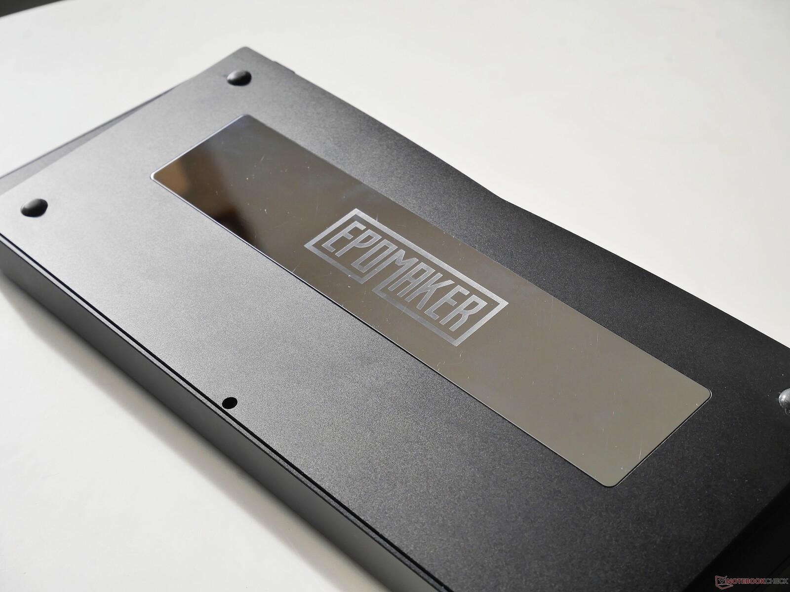 Insgesamt ist die Verarbeitungsqualität der Tide 75 solide; die Tastatur ist mit einem Gewicht von 1.712 g nach unseren Messungen schwer. Auf der Unterseite der Tastatur befindet sich eine glänzende Akzentplatte (von der das zusätzliche Gewicht nicht herrührt), in deren Oberfläche das Epomaker Logo eingelasert ist.