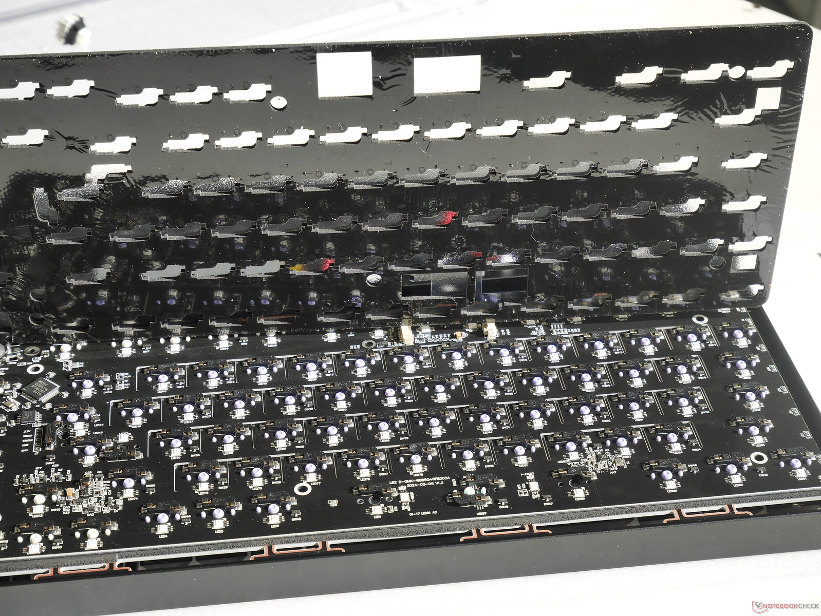 Die Tide 75 hat ein Hot-Swap-PCB mit Unterstützung für drei- und fünfpolige mechanische Schalter. Die Platine unterstützt Split Spaces, aber die mitgelieferte FR4-Platte nicht. Das ist etwas enttäuschend, da die Standard-.JSON-Datei für die VIA-Anpassung auch die Option Split Space Layout enthält. Epomaker bietet ein Split-Space-Modul für einige seiner anderen Tastaturen an, und es wäre schön gewesen, hier die gleiche Flexibilität zu sehen.