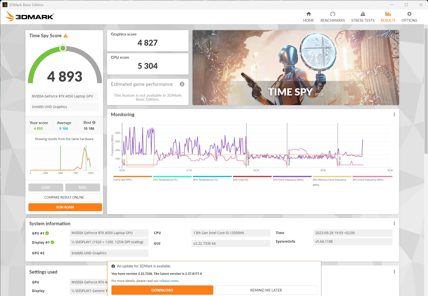 | 85.6 % v7 (old) | 05 / 2025 | HP Victus 16-r0076TX i5-13500HX, GeForce RTX 4050 Laptop GPU | 2.3 kg | 22.9 mm | 16.10" | 1920x1080 | |