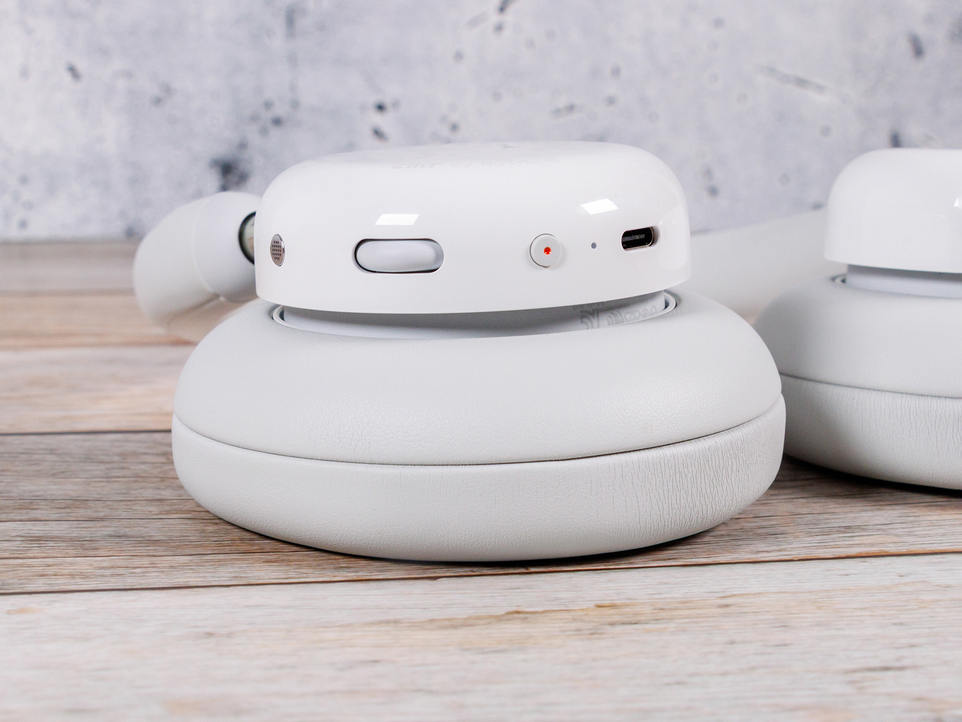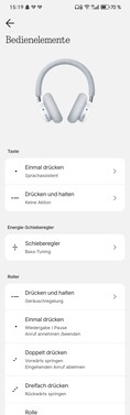 Die Hardware-Steuerung ist intuitiv und nicht fummelig: Das rechte Ohrpolster hat ein taktiles Drehrad für Lautstärke/Play-Pause (Drehen/Swipen). Der linke Ohrhörer beherbergt die Power-Taste sowie den Bass-Boost-Schieber. Die App-Erweiterung glänzt mit Equalizern, personalisierter Klangkurve und Update-Benachrichtigungen. Auch ein Button zum Aktivieren des Sprachassistenten ist vorhanden.