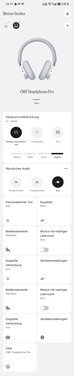 Das Pairing ist unkompliziert: Nach dem Einschalten (Taste 3 Sek. halten) erscheint das Headset automatisch im Bluetooth-Menü und unterstützt auch Google Fast Pair sowie Microsoft Swift Pair. Die App (iOS / Android) führt in 2 Minuten durch ein Setup, welches einen Hörprofil-Test, ANC-Kalibrierung und einen Firmware-Check beinhaltet.