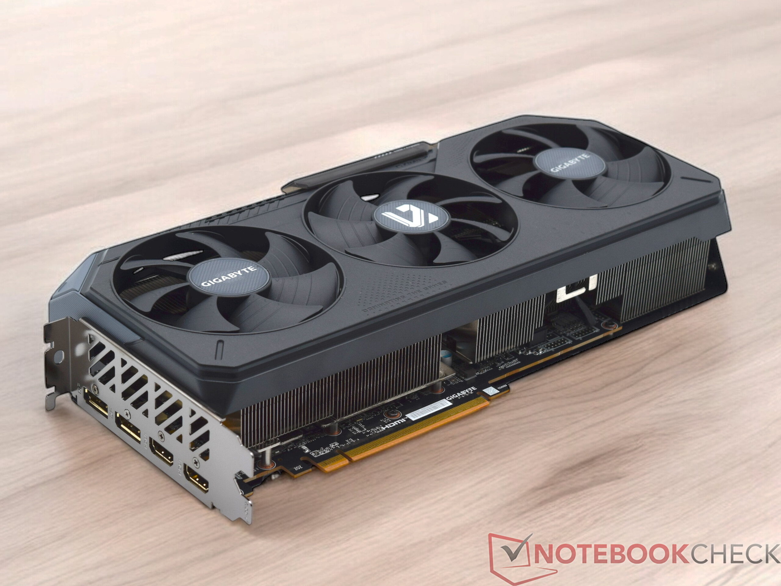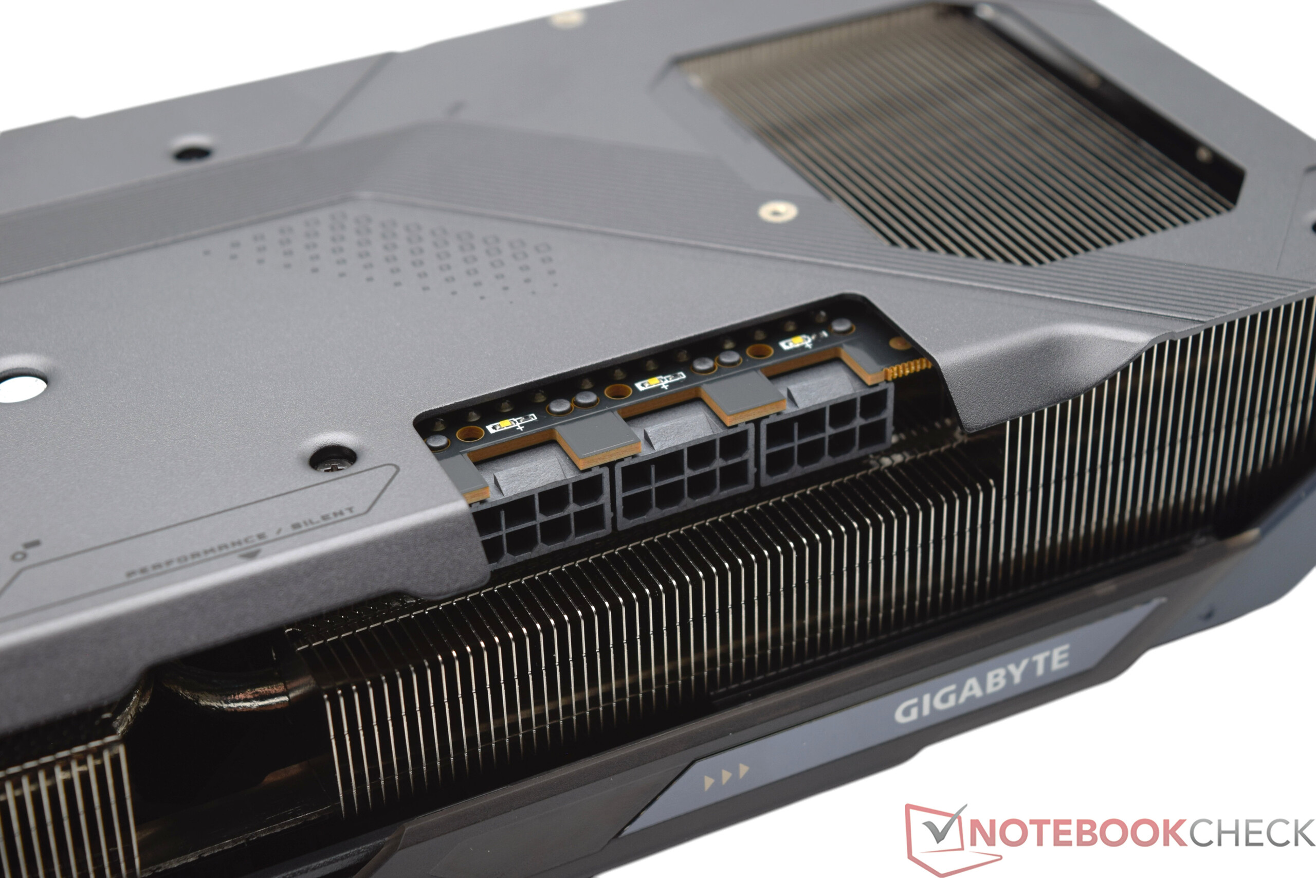 Beide Gigabyte-Testmodelle verfügen über ein ähnliches Kühldesign, das sich bei genauer Betrachtung jedoch in einigen Details unterscheidet. Die Gigabyte Radeon RX 9070 XT Gaming OC ist aufgrund ihrer höheren Leistungsaufnahme mit einem leistungsfähigeren Kühlsystem ausgestattet, das in unseren Tests keine negativen Auffälligkeiten zeigte. Allerdings ist die Karte mit einem gemessenen Schalldruckpegel von 41,8 dB(A) nicht völlig lautlos. Die drei Lüfter erzeugen zwar ein akzeptables Geräuschniveau, sind in einem geschlossenen Gehäuse aber noch leicht wahrnehmbar.