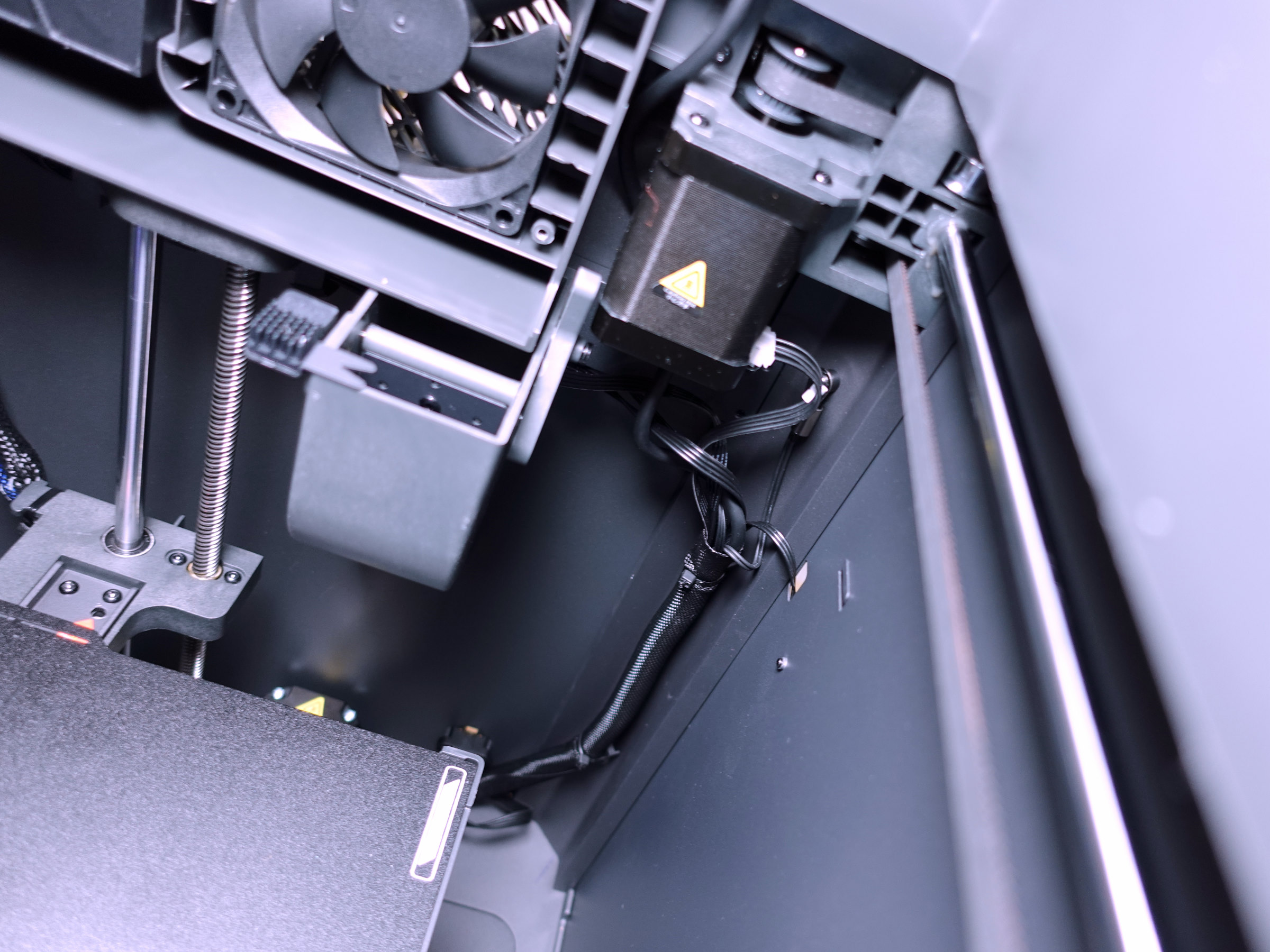 Der geschlossene Bauraum des Centauri Carbon bietet zwar eine physische Barriere. Dennoch fällt auf, dass kein Türsensor verbaut ist. Ein solcher Sensor könnte den laufenden Druck sofort unterbrechen, sobald die Tür geöffnet wird. Dies wäre ein wichtiger Beitrag zum Berührungsschutz, um beispielsweise Kinder oder unbedachte Personen vor dem Kontakt mit den heißen und sich schnell bewegenden Teilen im Inneren des Druckers zu schützen.