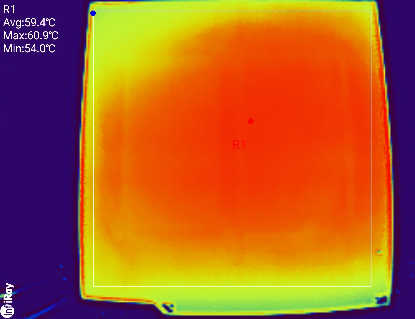 Seine Maximaltemperatur von 110 °C erreicht das beheizte Druckbett schnell und gleichmäßig. Es direkt mit Netzspannung beheizt und zieht dabei fast 1.000 Watt. So benötigt der Drucker gerade einmal 35 Sekunden, um das Druckbett von 20 auf 60 °C aufzuheizen.
