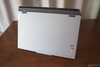 Beim Gehäuse erwärmt sich vor allem die Unterseite. Maximal 58 °C sprechen gegen Gaming-Sessions auf dem Chassis. Die Oberseite wird mit maximal 49 °C nicht ganz so heiß, wobei wir uns unter anderem eine kühlere Handballenauflage gewünscht hätten. Im Leerlauf pendelt sich das Chassis auf knapp 30 °C ein – ein moderater Wert.