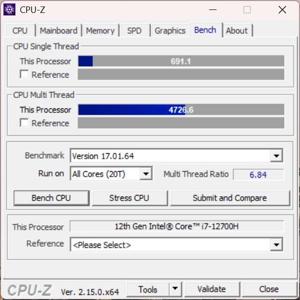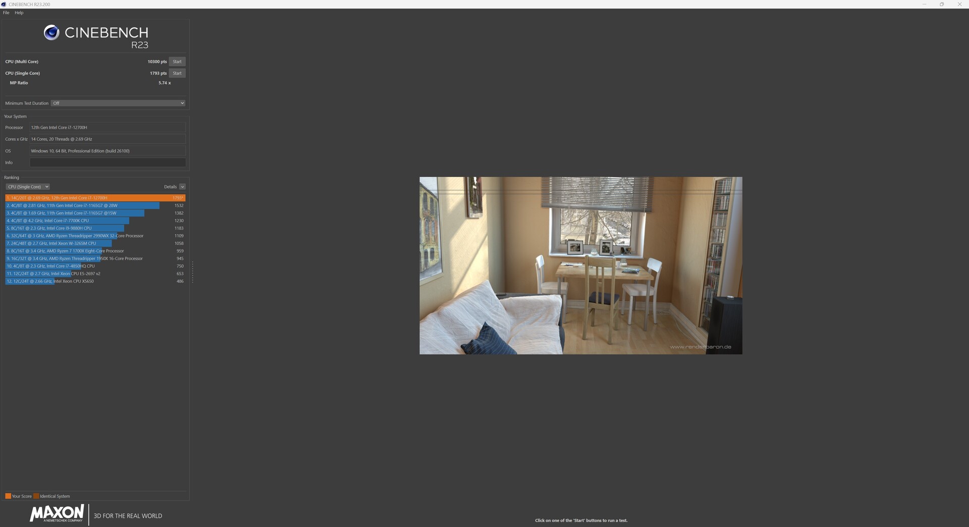 Der Intel Core i7-12700H liefert mit seinen 14 Kernen (6P + 8E) eine solide Leistung. Hinsichtlich der Leistungsaufnahme arbeitet das SoC lediglich mit 35 Watt, was gemäß den Spezifikationen seitens Intel die minimal sichergestellte Leistung darstellt. Somit kann der Prozessor bei Multi-Thread-Aufgaben nicht mit den Kontrahenten mithalten.