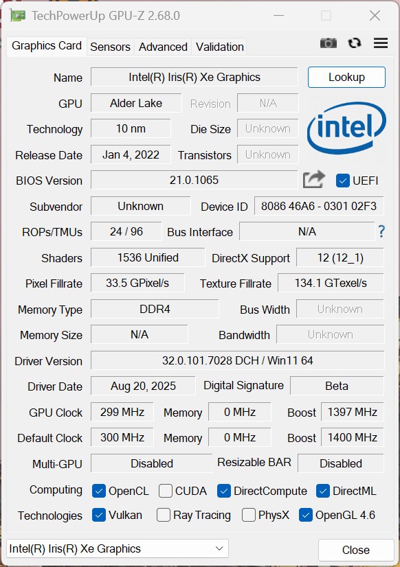 Die integrierte Intel Iris Xe-Grafikeinheit des GMKtec NucBox M3 Ultra bietet eine solide Basis für alltägliche Aufgaben wie Office-Arbeiten, Medienwiedergabe oder einfache Foto- und Videobearbeitung. In aktuellen Grafikbenchmarks zeigt sich jedoch, dass die iGPU leistungsmäßig nicht mit neueren integrierten Lösungen konkurrieren kann, wie sie etwa in Modellen mit modernen AMD- oder Intel-Prozessoren der neuesten Generation zu finden sind. Für anspruchsvolle Spiele oder grafikintensive Anwendungen reicht die Leistung nur bedingt aus. Eine Option zur Nutzung einer externen GPU über USB4 oder OCuLink bietet der GMKtec NucBox M3 Ultra nicht.