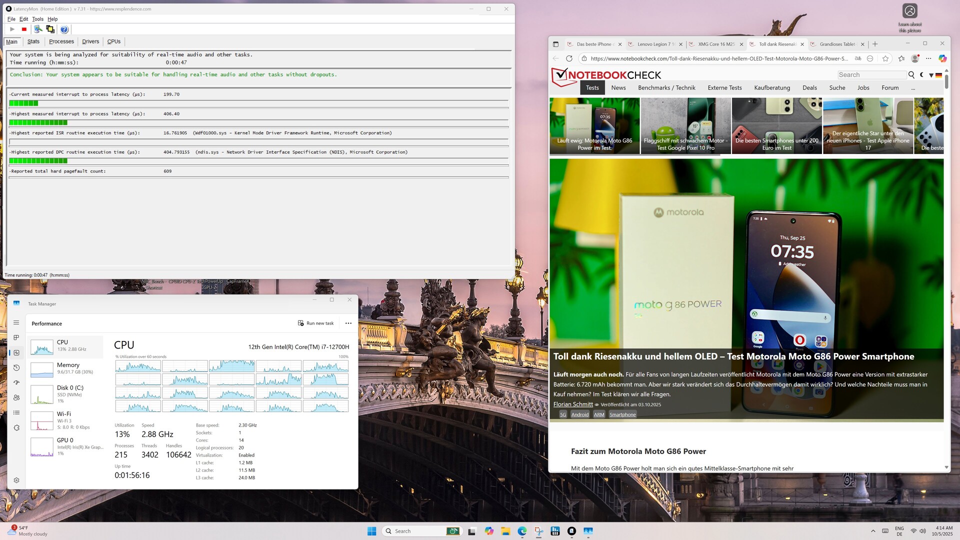Die gemessenen DPC-Latenzen fallen insgesamt unauffällig aus. Erst unter Prime95-Last steigen die Werte leicht an, bleiben jedoch weiterhin im unkritischen Bereich.
