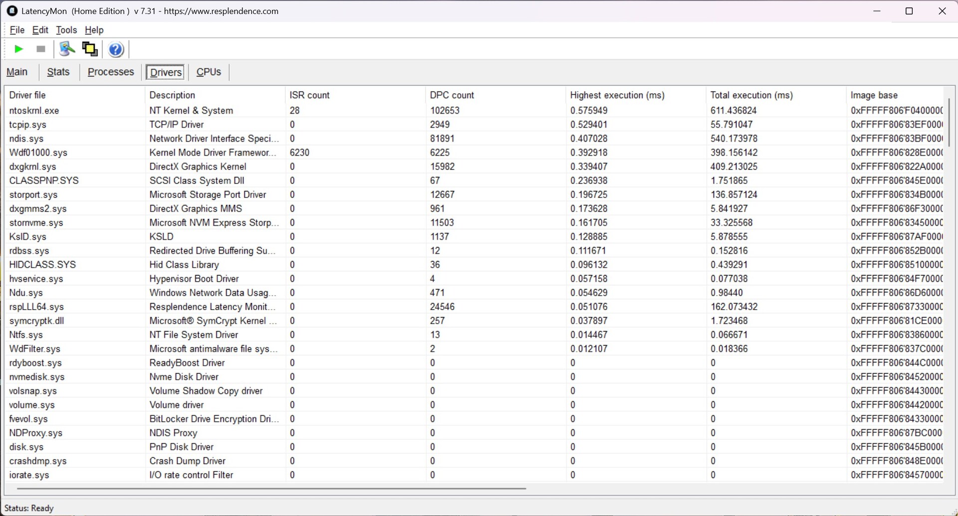 | DPC Latencies / LatencyMon - interrupt to process latency (max), Web, Youtube, Prime95 | |