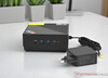 Beim Energieverbrauch zählt der NiPoGi AM06 Pro zu den effizientesten Geräten im Vergleichsfeld. Das sparsame SoC spielt dabei eine entscheidende Rolle, auch wenn die Rechenleistung im Vergleich zur Konkurrenz etwas geringer ausfällt. Selbst unter Last überschreitet der Mini-PC nur selten die 30-Watt-Marke, was ihn zu einer sehr stromsparenden Lösung macht. Die Stromversorgung erfolgt über eine USB-C-Buchse, wobei das beiliegende Netzteil eine Leistung von bis zu 65 Watt bereitstellt.