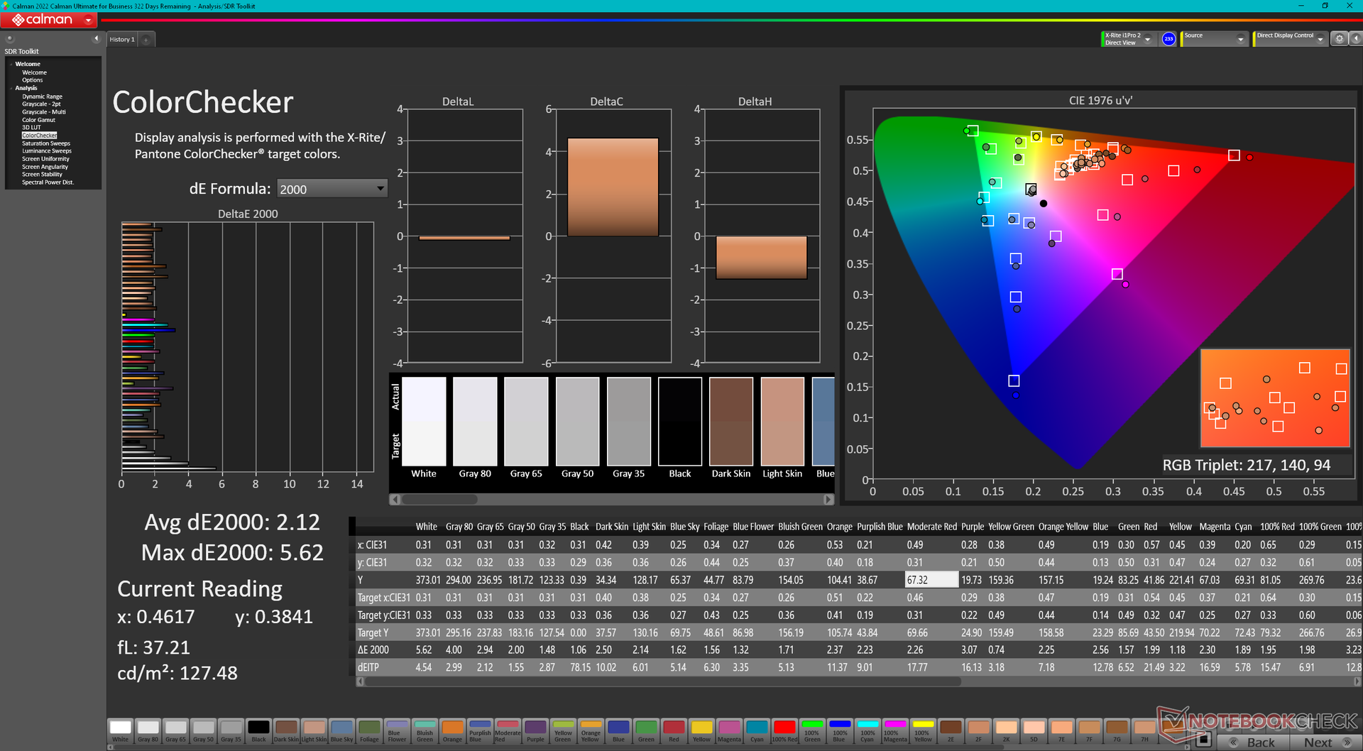 ΔE ColorChecker Calman: 2.12 | ∀{0.5-29.43 Ø4.77}