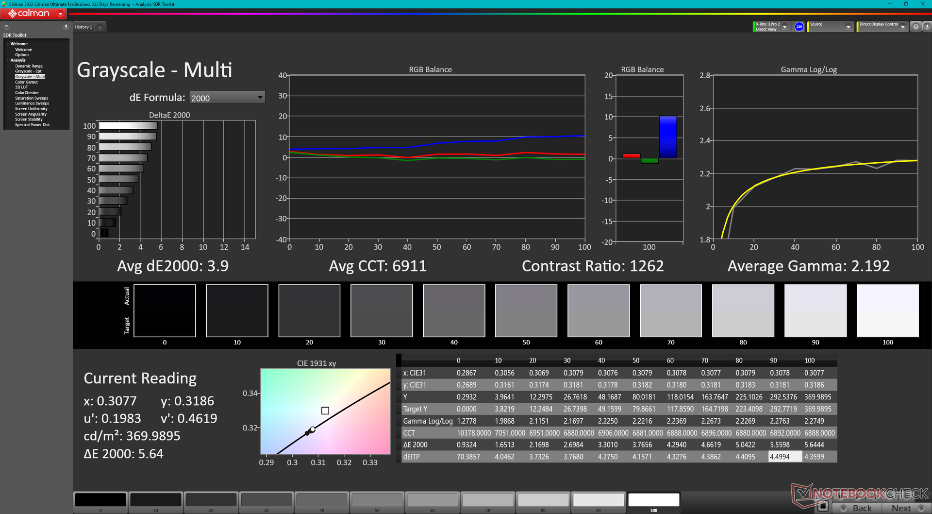 ΔE Greyscale Calman: 2.5 | ∀{0.09-98 Ø5}