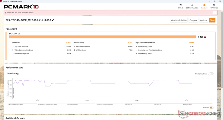 Im Akkumodus ist die Leistung eingeschränkt. Ein Fire-Strike-Durchlauf liefert im Akkumodus Physik- und Grafikpunktzahlen von nur 21.063 bzw. 5.722 Punkten, während im Netzbetrieb 25.021 bzw. 25.739 Punkte erreicht werden.