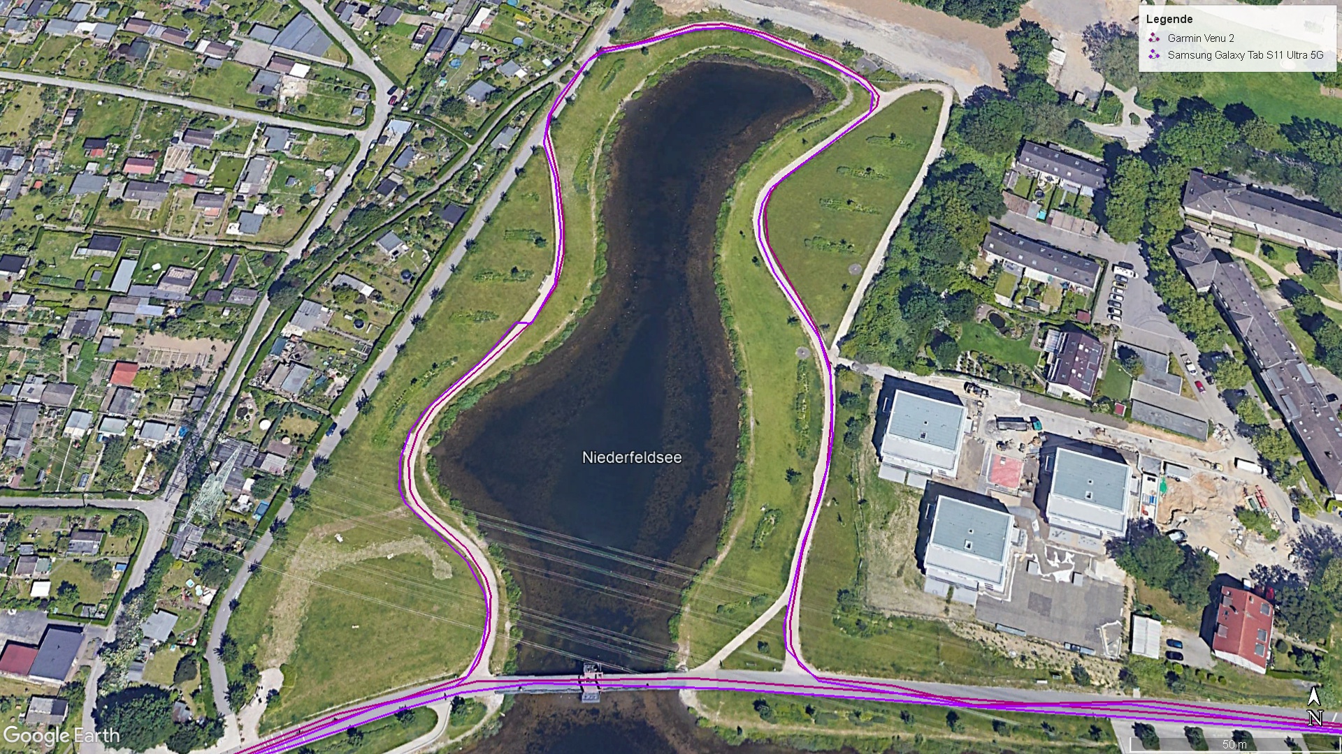 Während einer Fahrrad-Tour vergleichen wir das Samsung-Tablet zusätzlich mit der Fitness-Smartwatch Garmin Venu 2. Dabei zeichnet es die Wegstrecke exakt nach und leistet sich nur kleine Abweichungen neben dem Weg. Zu beachten ist, dass dies wohl primär für die hier getestete 5G-Version gilt, denn das von uns getestete WLAN-Modell des kleineren Tab S11 zeigt wesentlich schlechtere Ortungseigenschaften.