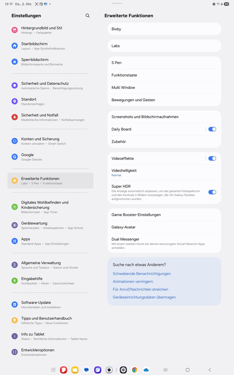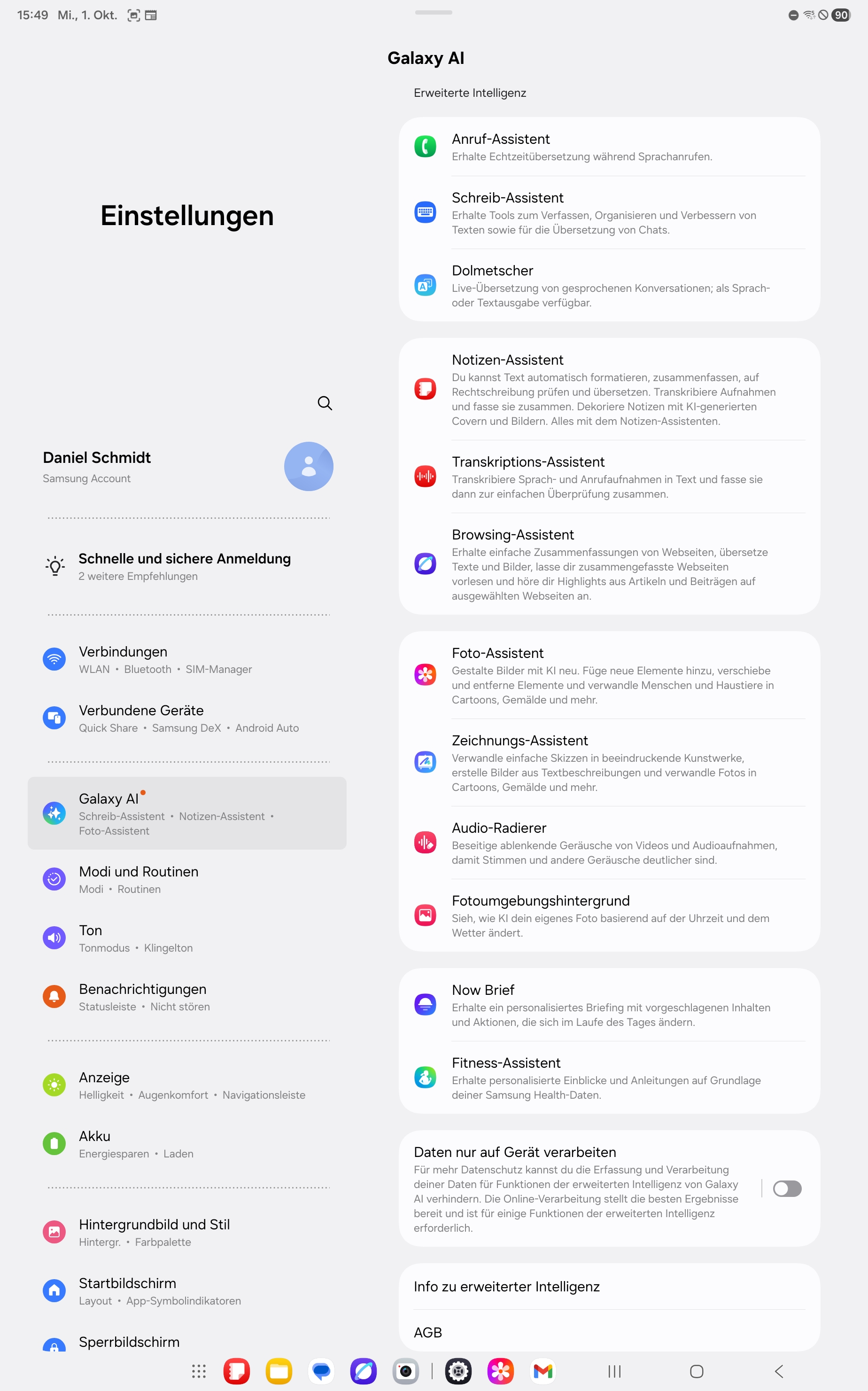 Angetrieben wird das Tablet vom MediaTek Dimensity 9400+ mit 12 GB RAM und schnellem UFS-4.0-Speicher, was für sehr hohe Leistung und flüssiges Multitasking sorgt. Android 16 mit One UI 8.0 und Galaxy AI läuft stabil, der neue DeX-Modus bietet produktives Arbeiten mit mehreren Fenstern direkt auf dem Tablet.