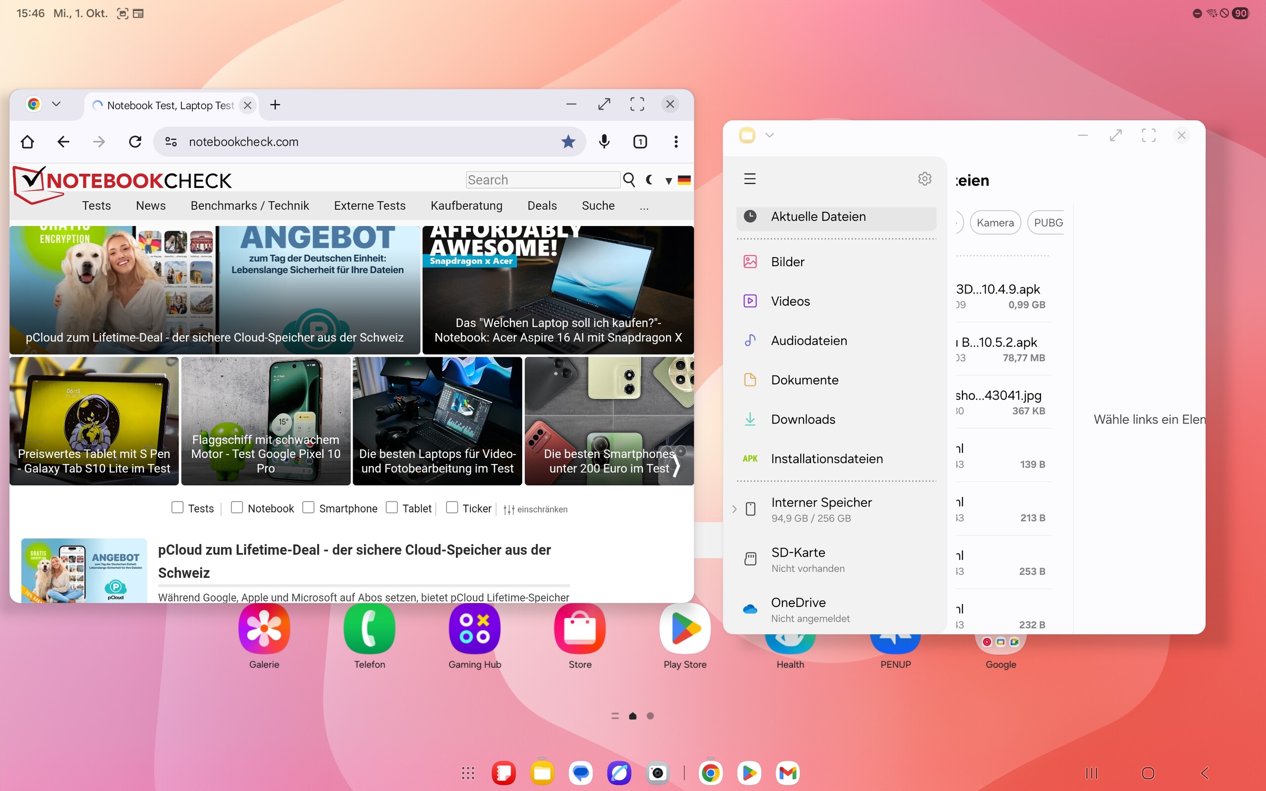 Der 11.600-mAh-Akku ermöglicht ordentliche Laufzeiten und lädt mit 45 Watt in rund 90 Minuten voll auf. Positiv sind der gute Klang der vier Lautsprecher und die moderne Ausstattung mit Wi-Fi 7, Bluetooth 5.4 und microSD-Slot. Kritikpunkte sind die fehlende Vibrationsfunktion und die nicht optimale Farbabstimmung des Displays.