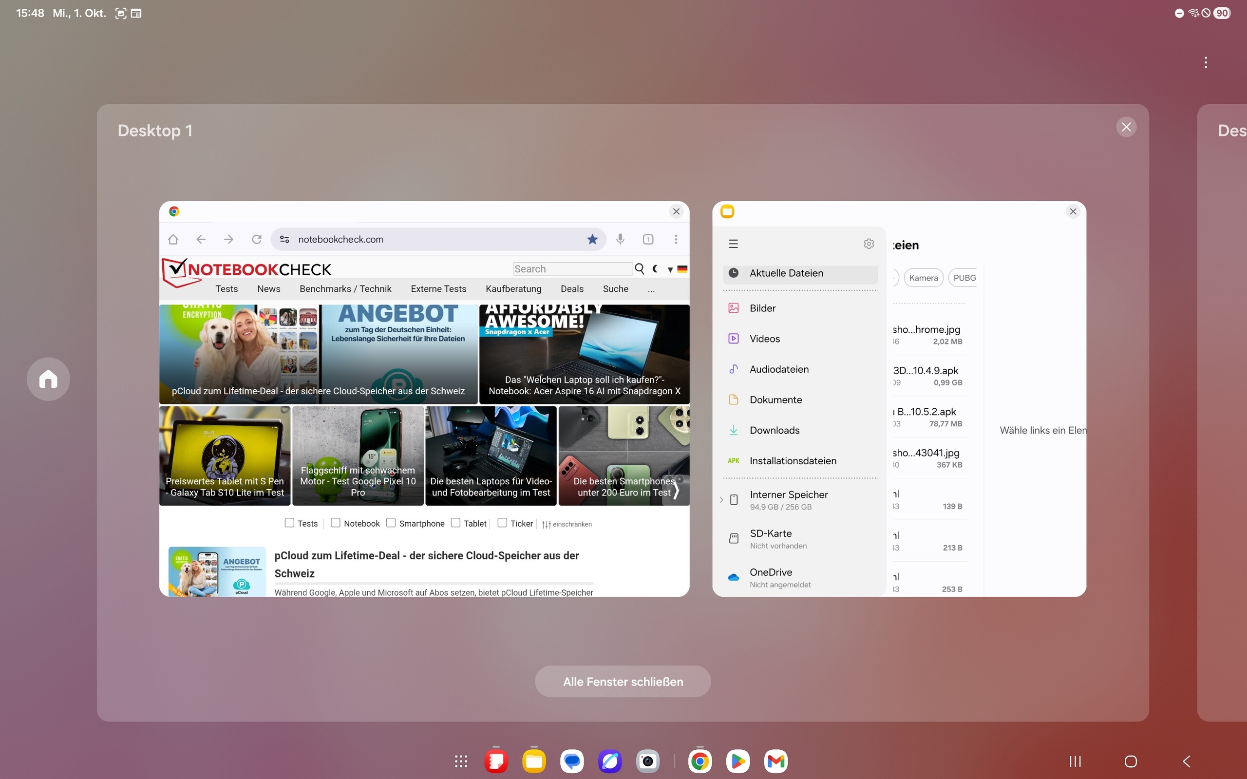 Den DeX-Modus hat Samsung stark überarbeitet. Dieser lässt sich weiterhin auch kabelgebunden oder kabellos auf ein externes Display projizieren, kann aber auch im vollen Umfang direkt auf dem Tablet genutzt werden. Dabei ist der Wechsel zwischen dem herkömmlichen Tablet- und dem DeX-Modus mit einer einfachen Wischgeste möglich und erlaubt dann die beliebe Größenanpassung und Positionierung von Fenstern und Apps. Ergänzt wird dies durch das Nutzen von bis zu vier Desktops.