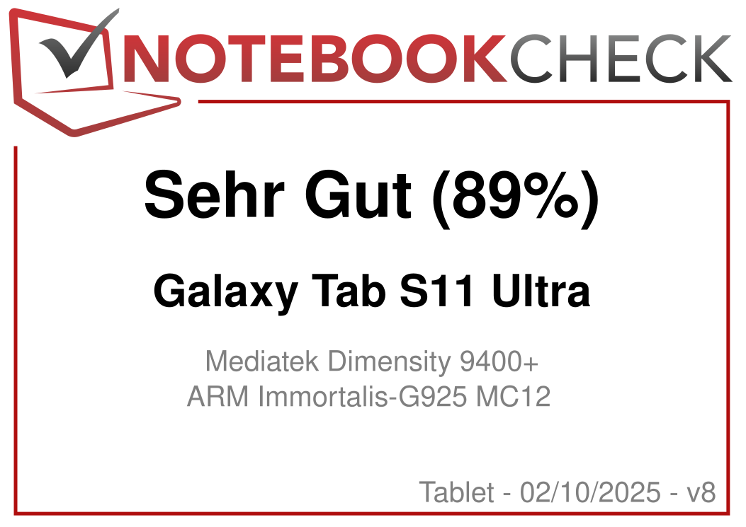 | Samsung Galaxy Tab S11 Ultra Mediatek Dimensity 9400+ ⎘ ARM Immortalis-G925 MC12 ⎘ 12 GB RAM, 256 GB | Amazon: 1.489,00 € Bestpreis 1113.47€ handy24.de 2. 1113.97€ Jacob Elektronik direkt 3. 1123.33€ Jacob Elektronik direkt (AT) | 695 g | 256 GB UFS 4.0 Flash | 14.60" 2960x1848 239 PPI Dynamic AMOLED 2X | |