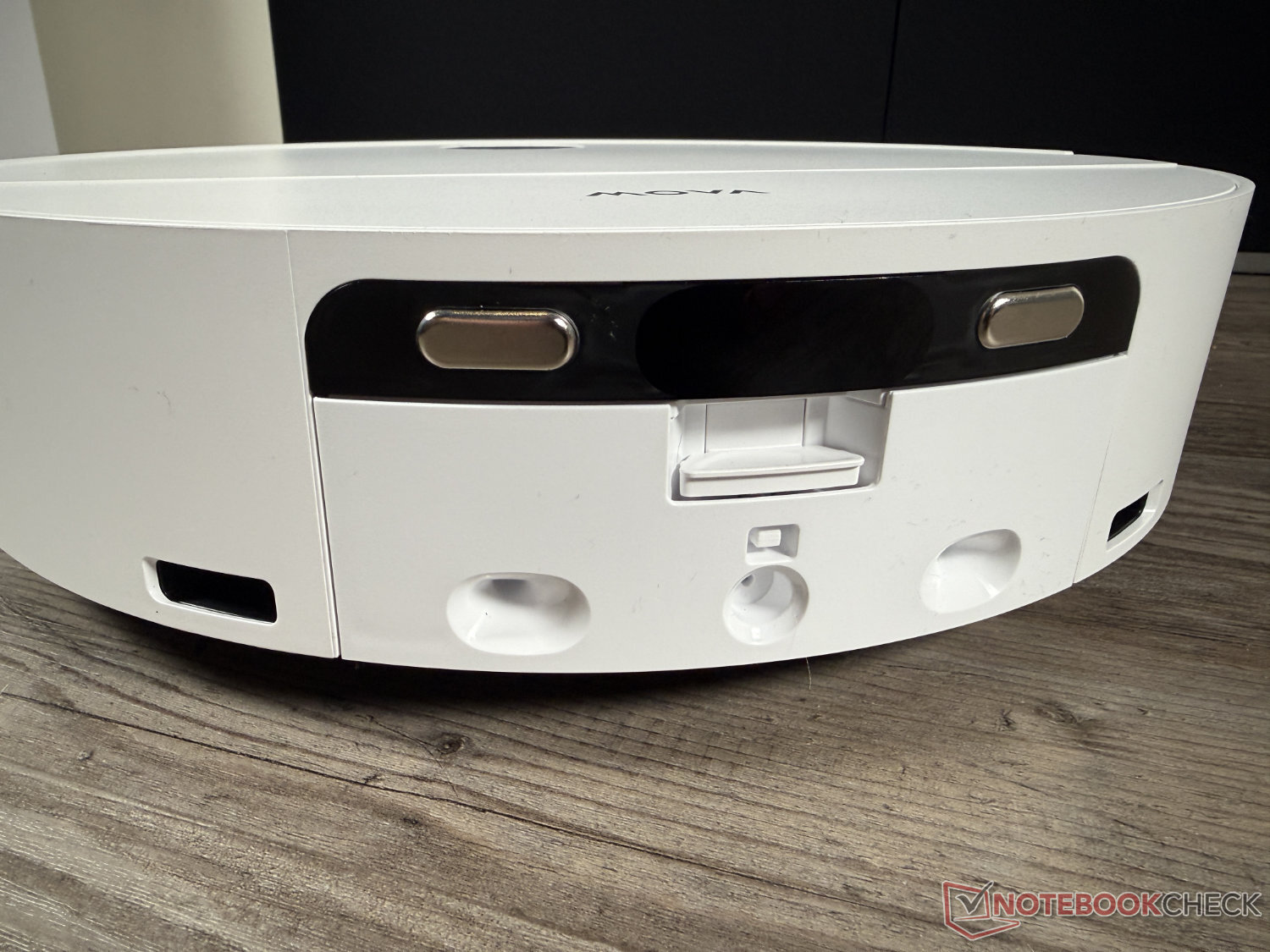 Der Mova S70 Roller hat keinen Laserturm. Stattdessen steckt die CoverSense-Navigation hinter einem breiten Sehschlitz in der Front, womit dem Saugroboter die 360-Grad-Sicht genommen wird. Die Folge ist, dass der Roboter sich bei der Navigation gelegentlich um die eigene Achse dreht, um sich zu orientieren. Ähnliches haben wir beispielsweise auch bei Roborocks StarSight-Technologie in den Flaggschiff-Modellen Saros 10R und Saros 20 beobachtet.