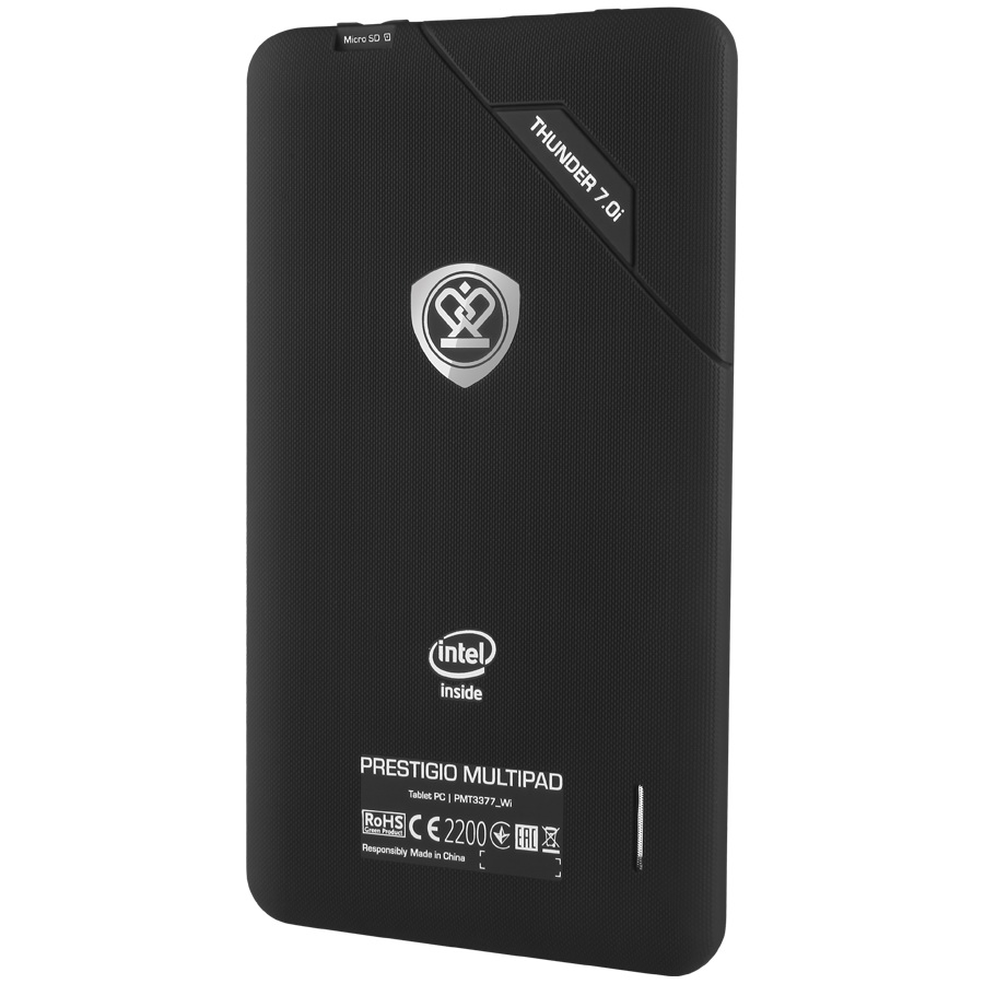 Zur den weiteren Features des 190 x 115 x 9,5 Millimeter messenden und rund 280 Gramm schweren MultiPad Thunder 7.0i von Prestigio zählen WLAN 802.11 b/g/n, ein micro-USB-Port sowie eine 3.5-mm-Audiobuchse. Bluetooth und HDMI hat das Tablet nicht. Dafür aber 2 integrierte Kameras (5 MP hinten, 0,3 MP vorne) und einen Lithium-Polymer-Akku mit einer Kapazität von 3000 mAh.