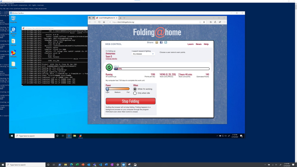 Das Script wird anschließend den aktuellsten Client von Folding at Home für Windows Sandbox herunterladen und installieren. Wenn Sandbox noch nicht aktiviert ist, übernimmt das Script dies ebenfalls und bootet anschließend den Rechner neu starten.