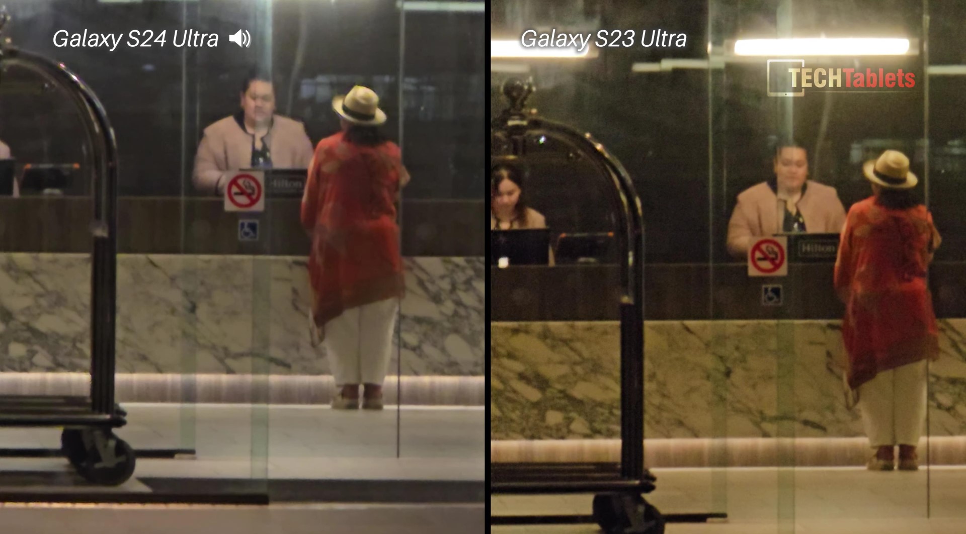 Ähnliche Probleme wie SuperSaf bekräftigt auch das Video von TechTablets unten, aus dem wir ebenfalls einige zentrale Screenshots entnommen haben. Auch hier zeigt sich einerseits die Tendenz helle Bereiche zu überstrahlen, etwa im Nachtphoto unten, bei der Blume gehen dadurch auch die Details verloren. Die Farben im Diner sind laut TechTablets beim iPhone authentischer, das Gesicht im Porträtphoto wurde vom Galaxy S24 Ultra leider eher unscharf abgebildet.