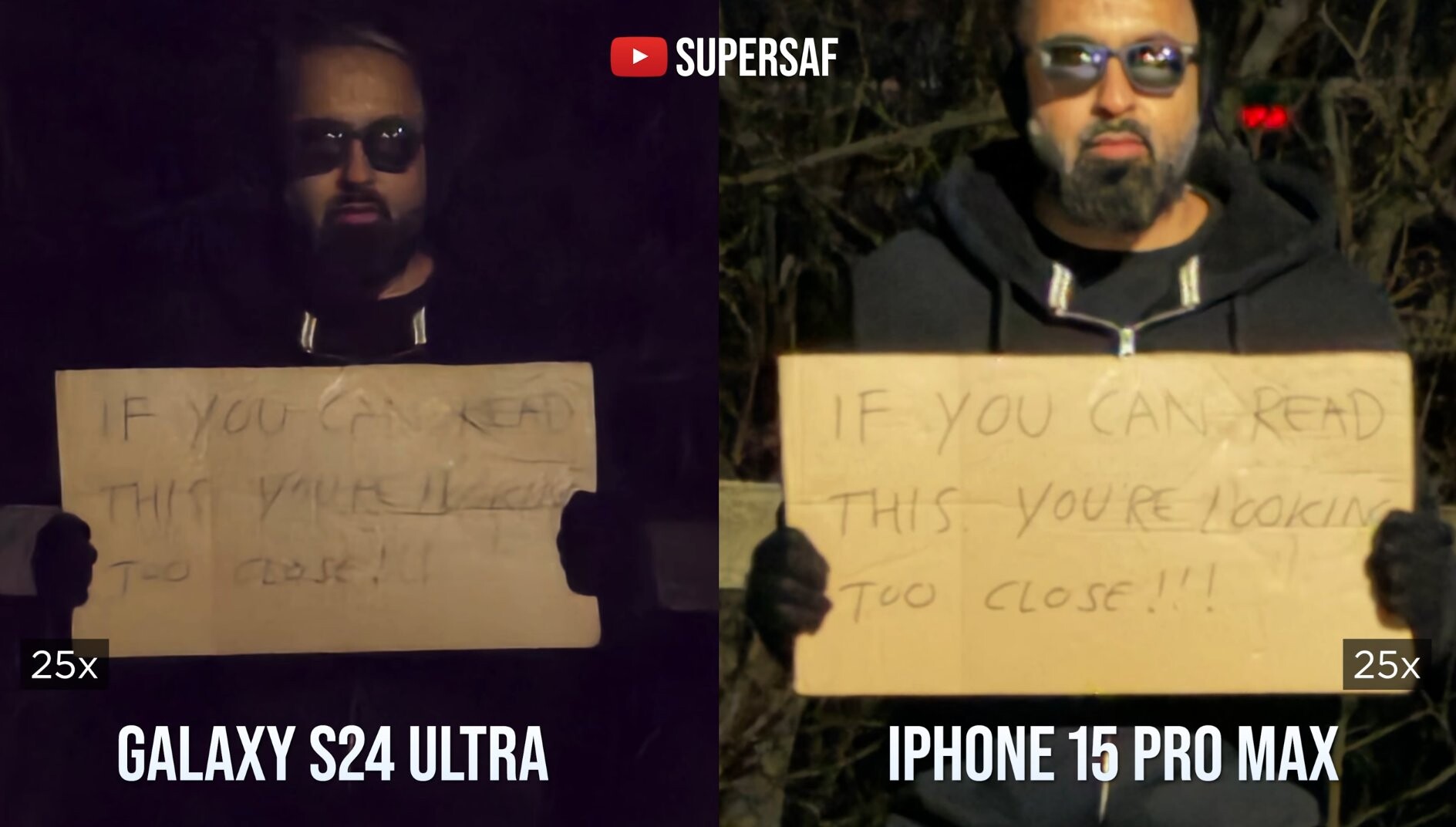 Beginnen wir gleich mal mit einigen für Samsung-Fans leider eher schwerverdaulichen Nachrichten. Der Youtuber SuperSaf hat die Kameras des neuen Galaxy-Flaggschiffs in mehreren Kategorien bereits gegen jene des iPhone 15 Pro Max antreten lassen und durchwachsene Ergebnisse geliefert. Wie die Sample-Photos unten demonstrieren, schneidet die neue 5x Zoom-Kamera ausgerechnet bei wenig Licht schlechter gegen jene des iPhone 15 Pro Max ab und das obwohl Samsung das kleine 10x Telefoto gegen das lichtstärkere und größere 5x Telefoto getauscht hat und mit "Zoom-Nightography" wirbt.