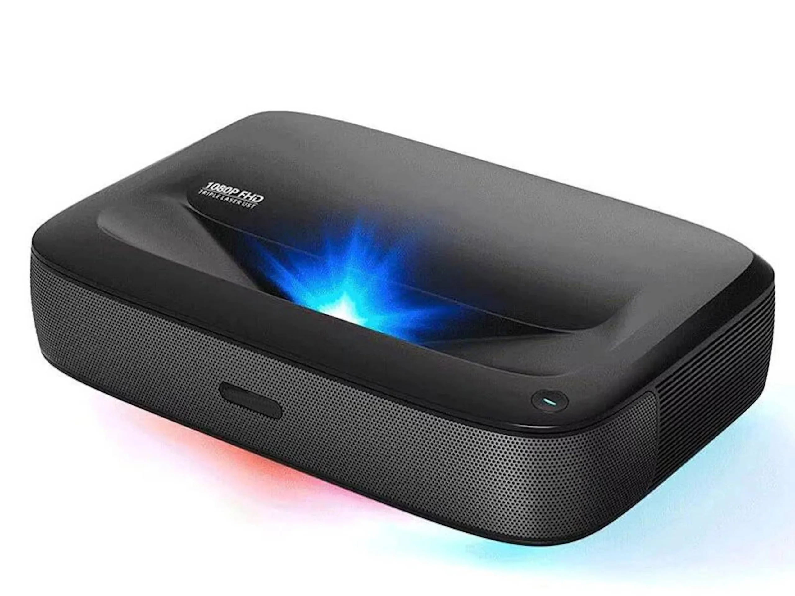 Mit Abmessungen von 466 x 308 x 110 Millimetern dürfte sich der Beamer wahrscheinlich auch noch relativ gut transportieren und an unterschiedlichen Orten nutzen lassen. Der H2 nutzt drei Laser, wodurch sich eine 110-prozentige Abdeckung des Rec. 709-Farbraums ergeben soll - das verspricht eine farbenfrohe Darstellung. Als Betriebssystem wird Google TV genutzt, womit der HDMI-Anschluss nicht unbedingt genutzt werden muss. Ethernet, WiFi und auch ein USB-Anschluss stehen ebenso bereit wie ein optischer Audioausgang.