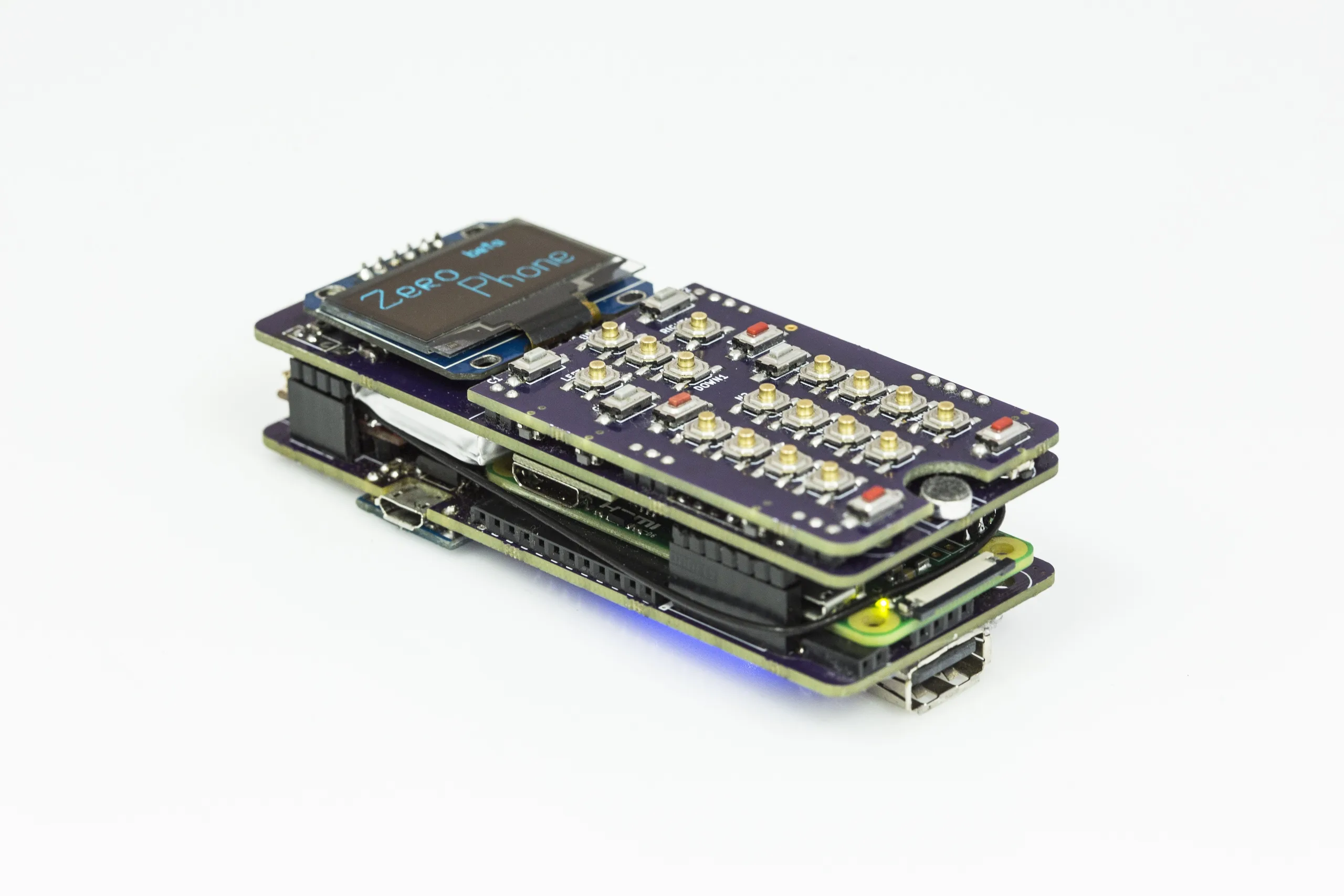 Im derzeitigen Zustand besteht das Funktelefon aus einem PCB-Board-Sandwitch mit Wifi, HDMI und Audio-Ausgängen. Darüber hinaus gibt es einen vollwertigen USB-Host-Port sowie einen USB-C-Anschluß für das Aufladen. Der Entwickler arbeitet derzeit noch an der Integration eines 3G-Modems, bisher ist nur ein 2G-Modell verbaut. Als OS kommt eine Raspbian-Linux-Variante ohne Desktop-Umgebung zum Einsatz. Für das Coding des UI stellt Python die Basis.