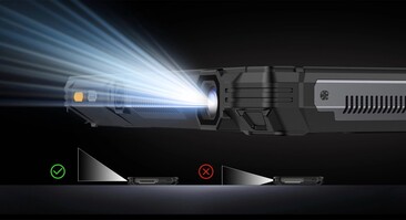Das beginnt schon bei den insgesamt 754 LEDs auf der Rückseite, die eine Helligkeit von 1.000 Lumen erreichen, und die wahlweise auch in einer warmen Farbtemperatur leuchten können. Das Tablet besitzt einen integrierten DLP-Projektor, der durch einen dedizierten Button am Rahmen jederzeit aktiviert werden kann. Dieser erreicht eine Auflösung von 960 x 540 Pixel, eine Helligkeit von 200 Lumen und kann ein Bild mit einer Diagonale von 40 bis 80 Zoll projizieren.