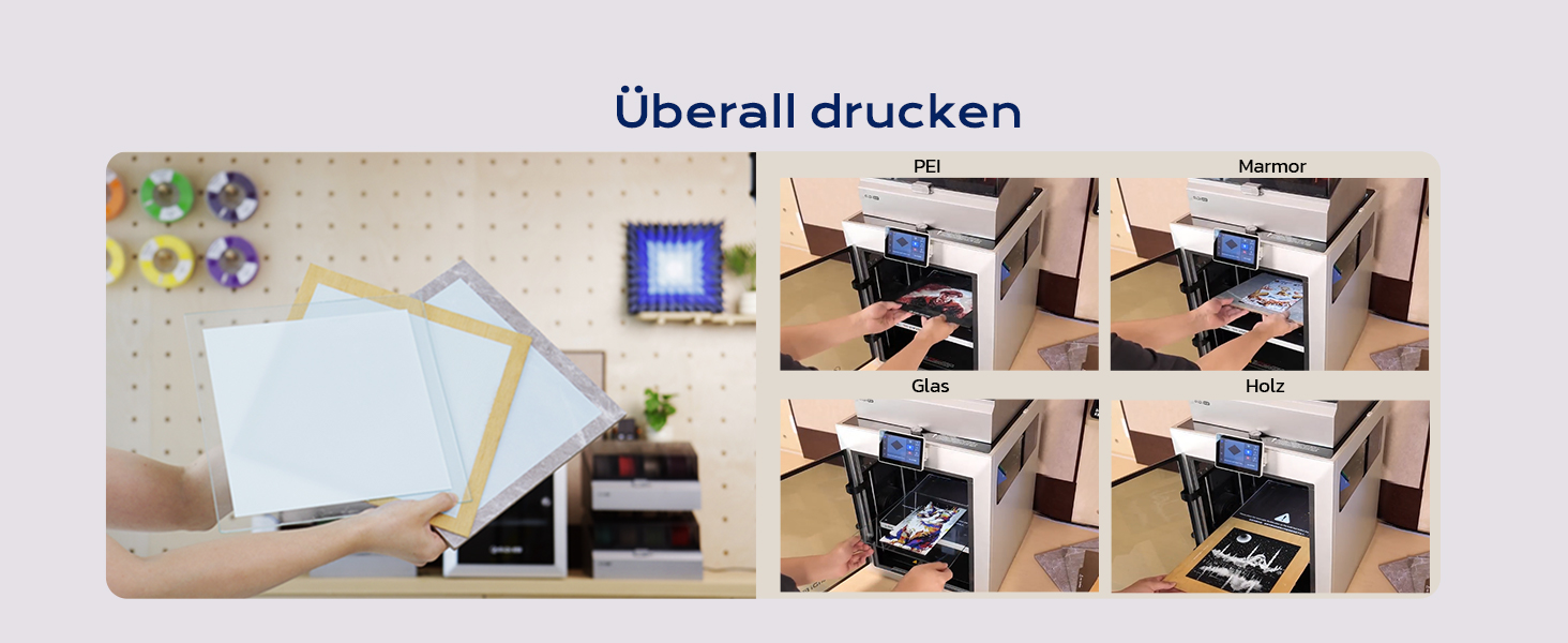 Besonders beworben wird die präzise Anfertigung der ersten Schicht. Zum Einsatz kommt Herstellerangaben zufolge einer neuen Nivelliersensor, die Drückdüse selbst fungiert gleich als eine solche. Beworben wird die Minimierung von Vibrationen durch einen speziellen Riemen mit mehr Zähnen.