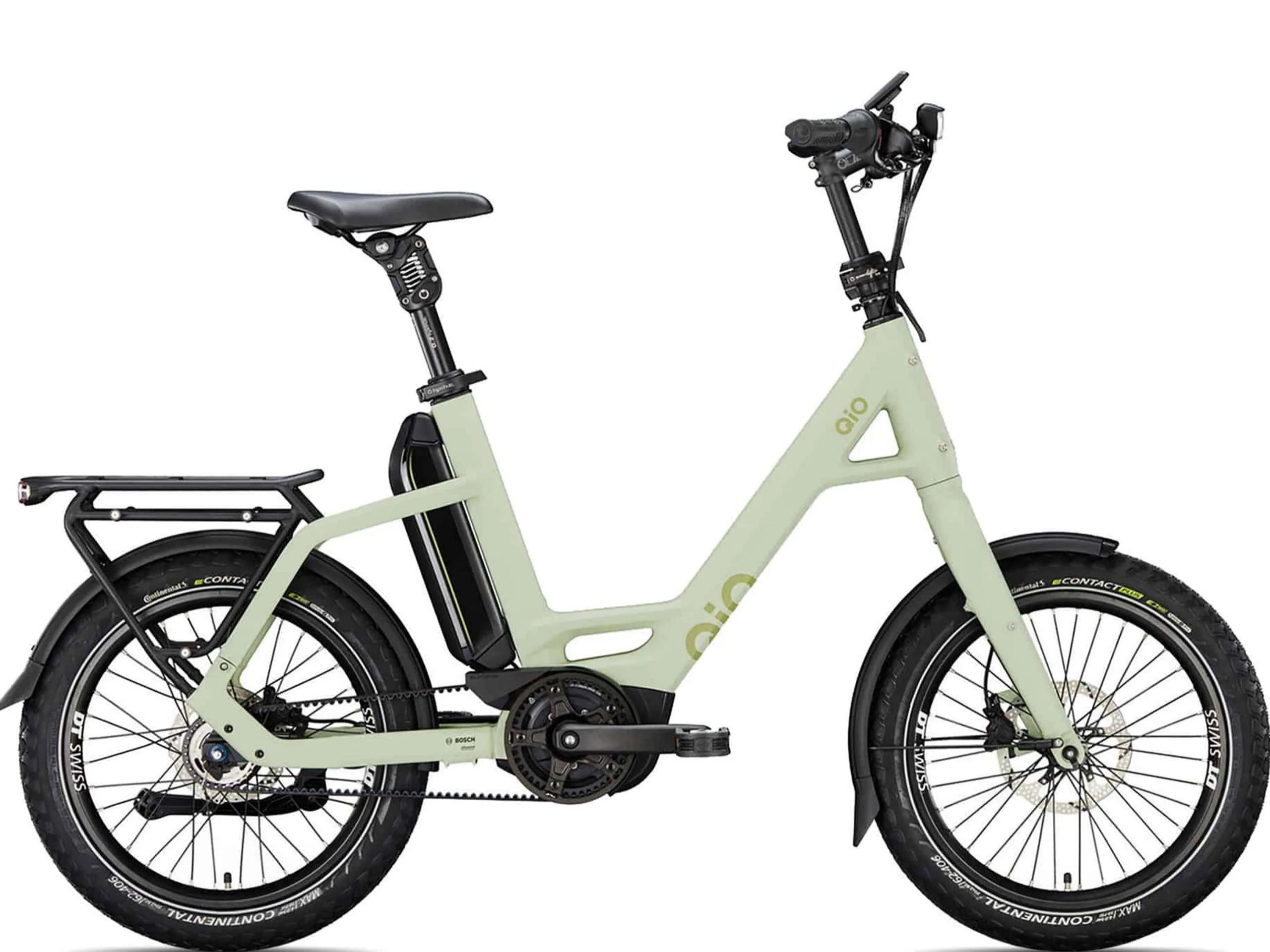 Wir haben bereits über den Hersteller QiO berichtet. Das Unternehmen bietet kompakte Elektrofahrräder an, welche trotzdem einen hohen Alltagsnutzen mitbringen sollen. Das ab sofort erhältliche QiO Eins P-5 FL 2025 ist dabei klar für den Einsatz in der Stadt ausgelegt - und tendenziell auf gut ausgebauten Straßen oder Wegen. So kommt eine Starrgabel und nicht eine wie bei Trekking-E-Bikes übliche Federgabel zum Einsatz. Aufgezogen sind Contenental E Contact Plus 62-406-Reifen, diese sind dementsprechend 20 Zoll groß - letztlich dürften diese Reifen aber auch kurze Ausflüge auf Feld- oder Waldwege verzeihen. Die Sattelstütze ist gefedert.