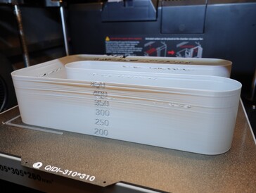Auch mit 200 mm/s bis 300 mm/s ist der Qidi Plus4 eigentlich ein recht schneller 3D-Drucker. Ausgebremst wird das Gerät jedoch von seinen Entwicklern und der vion ihnen erstellten Konfiguration. Bevor der Drucker überhaupt anfängt zu Drucken, steht immer die Reinigung der Düse an, um anschließend vor jedem Druck den Z-Versatz zu bestimmen. Dies wirkt sich zwar positiv auf die Ergebnisse des3D-Druckers aus, dauert aber recht lange. In unseren Tests werden hierfür bis zu sieben Minuten benötigt.