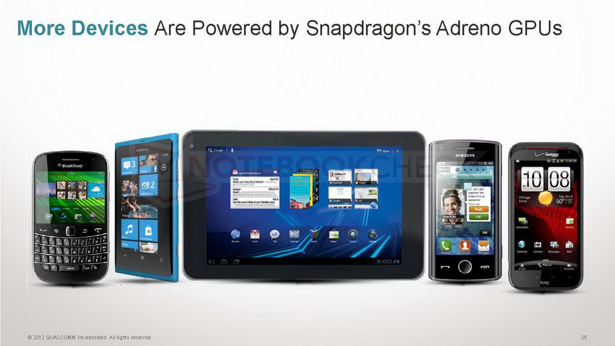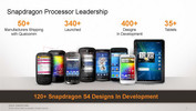 Inzwischen haben unterschiedlichste Hersteller mehr als 120 Designs mit Snapdragon S4 in der Entwicklung. Auch im Windows-Lager sind Snapdragon System-on-Chips (SoC) inzwischen bei zahlreichen Geräten zu finden: mehr als 11 mit Windows Phone 7, mehr als 17 mit Windows Phone 7.5 und künftig auch bei Mobile-Geräten mit Windows Phone 8 und Windows 8. Bei Qualcomm sieht man sich auch für den "Metro-UI-Style" gut gerüstet.